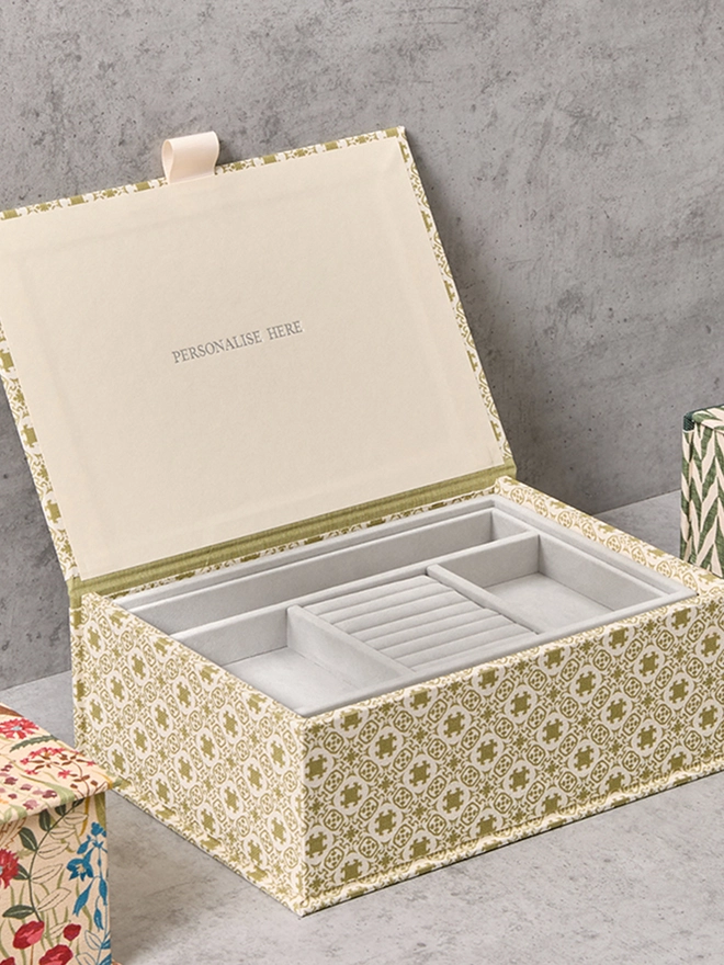 Keep your treasured jewellery safe and beautifully organised with our Personalised Decorative Fabric Jewellery Box. Crafted with care and attention to detail, this elegant jewellery box offers secure layered compartments to protect your accessories from scratches and damage. Add personalisation for a unique touch, making it a perfect gift for yourself or a loved one.
