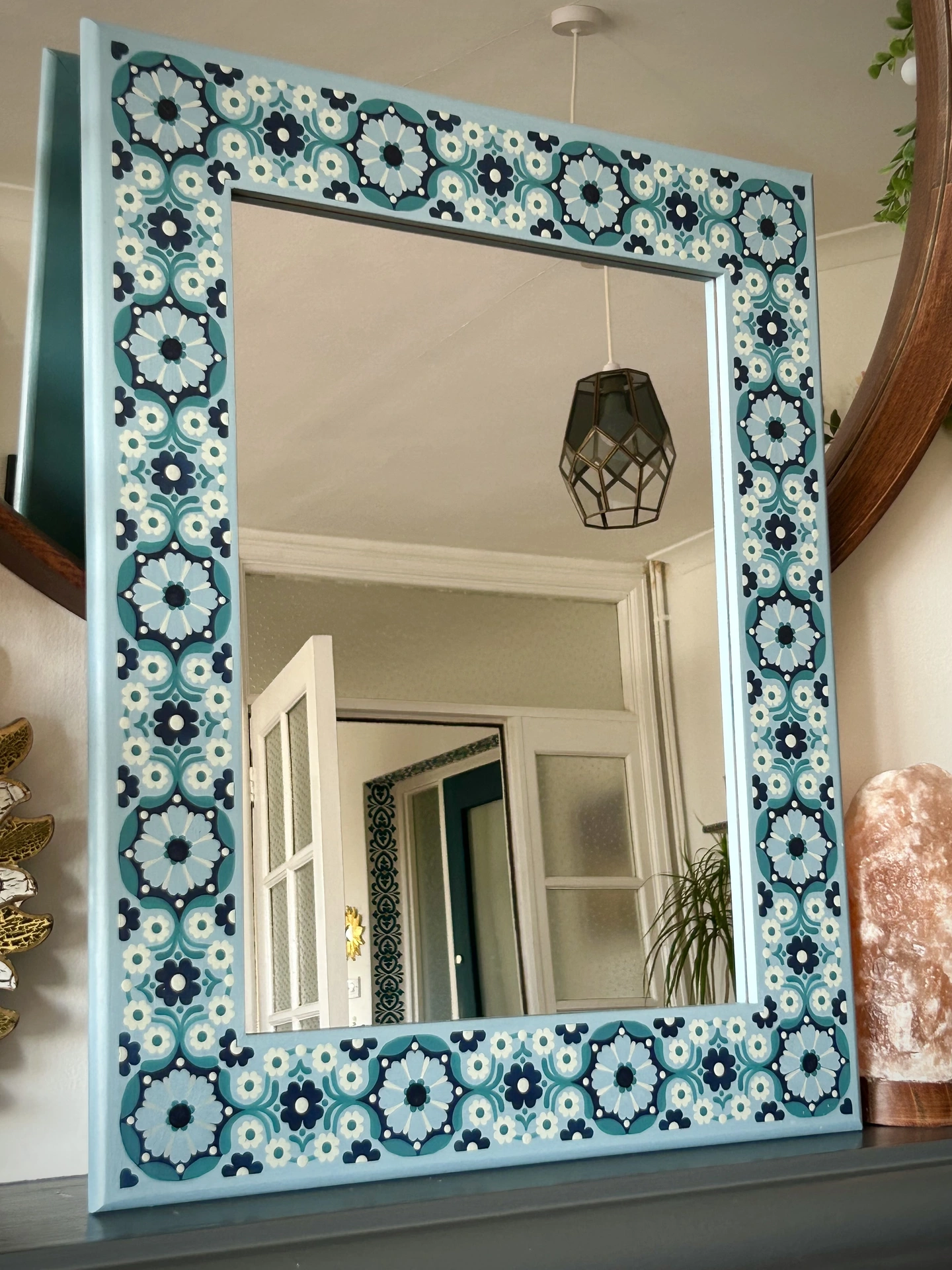 This mirror frame has been lovingly upcycled from a second-hand find. Transforming something overlooked into a cherished statement piece brings me immense joy, and I hope it brings the same happiness into your space.