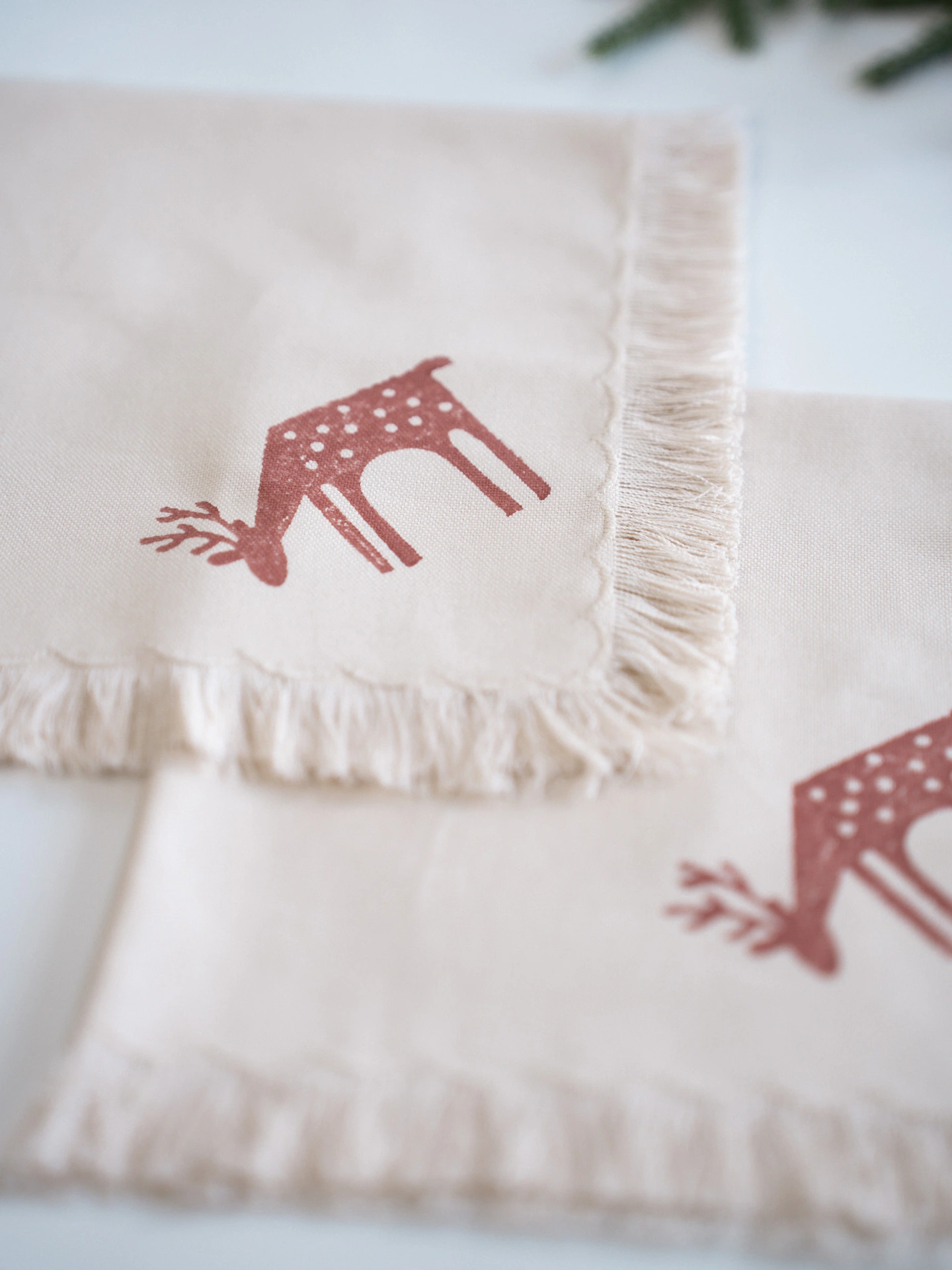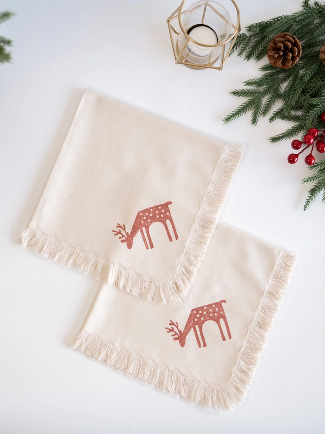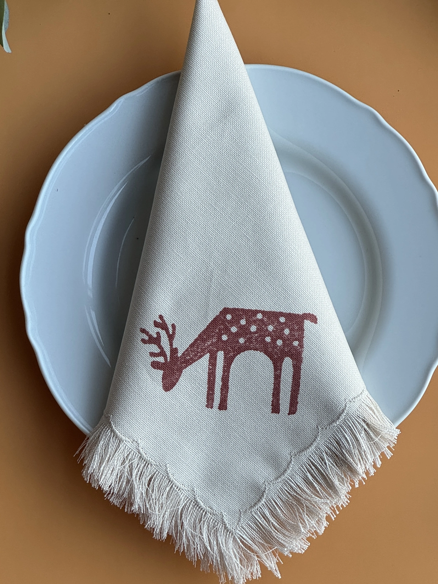 Bring festive charm and artisanal beauty to your holiday table with our cotton block-printed fringed napkins.