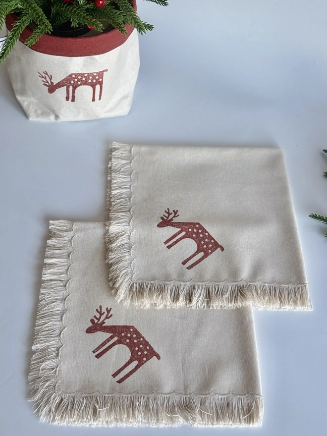 Perfect for Christmas gatherings or winter dinners, these napkins pair beautifully with our matching fabric baskets.