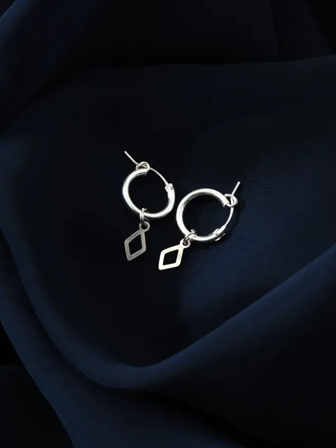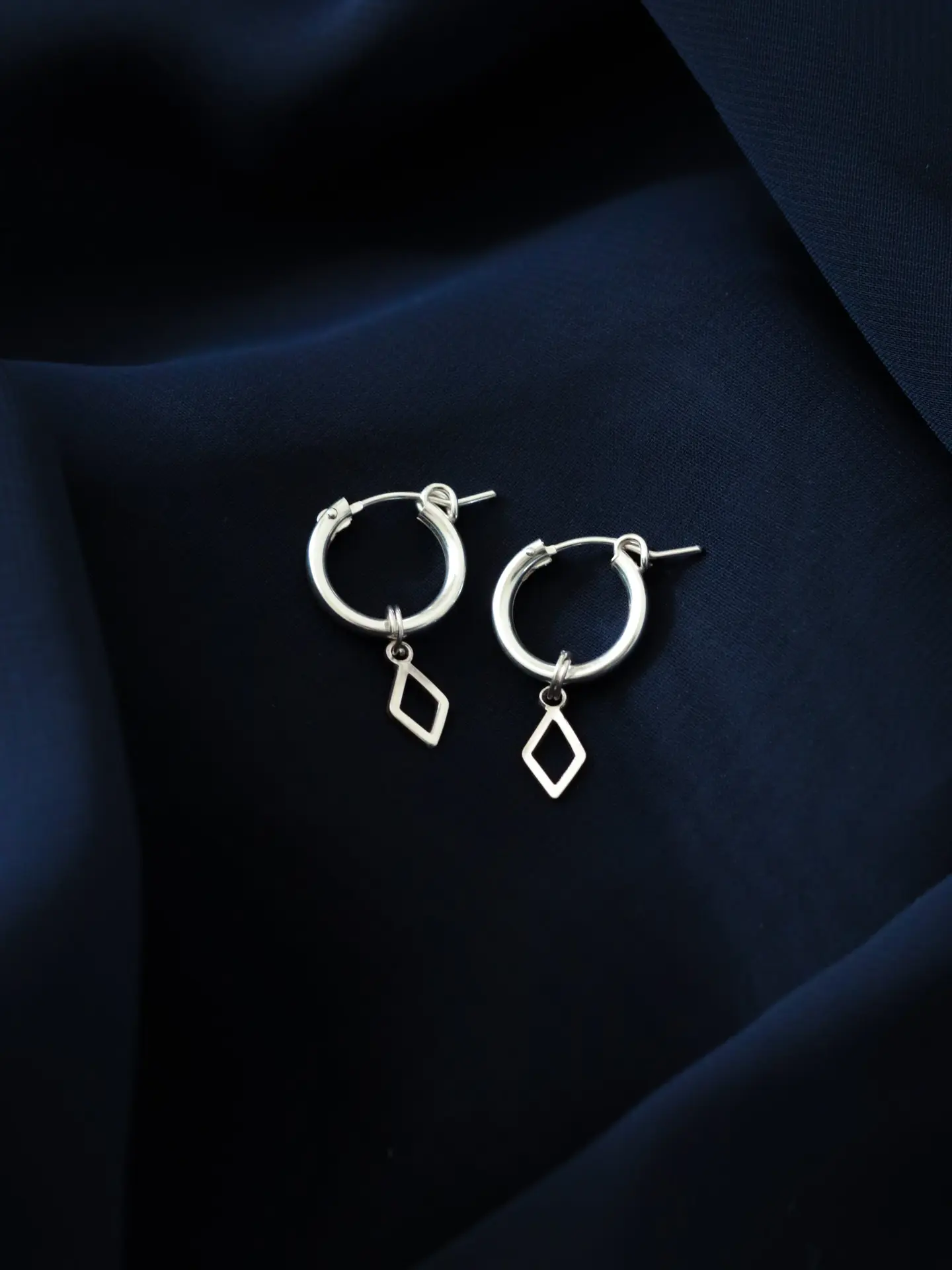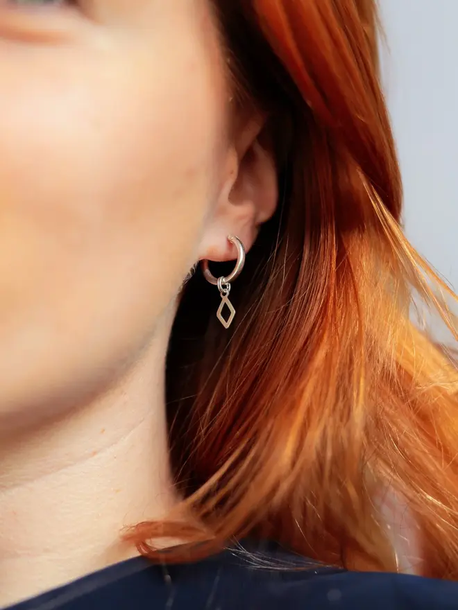 Dial up the dazzle with our Diamond Charm Huggie Hoops. The hand-drawn charms adds a unique shimmer and sparkle. These huggie hoops are the perfect way to elevate your style and make a sustainable statement.