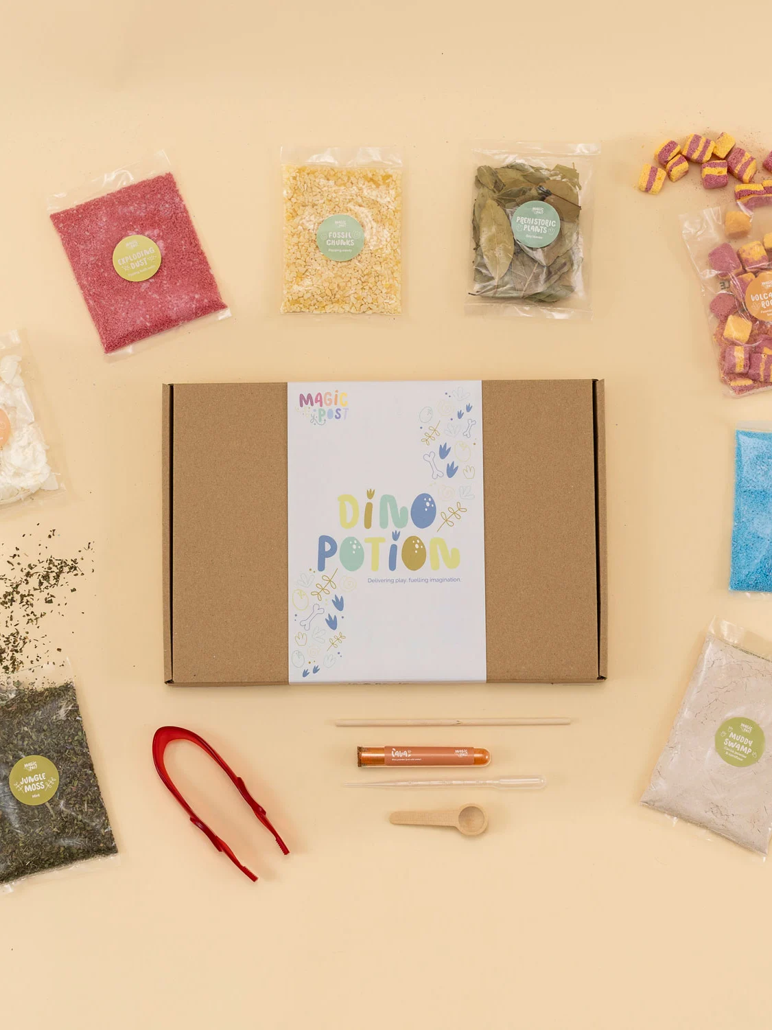 This prehistoric-themed activity set lets children mix, pour, and create magical potions using natural and bath-safe ingredients that fizz, pop, and burst with colour.