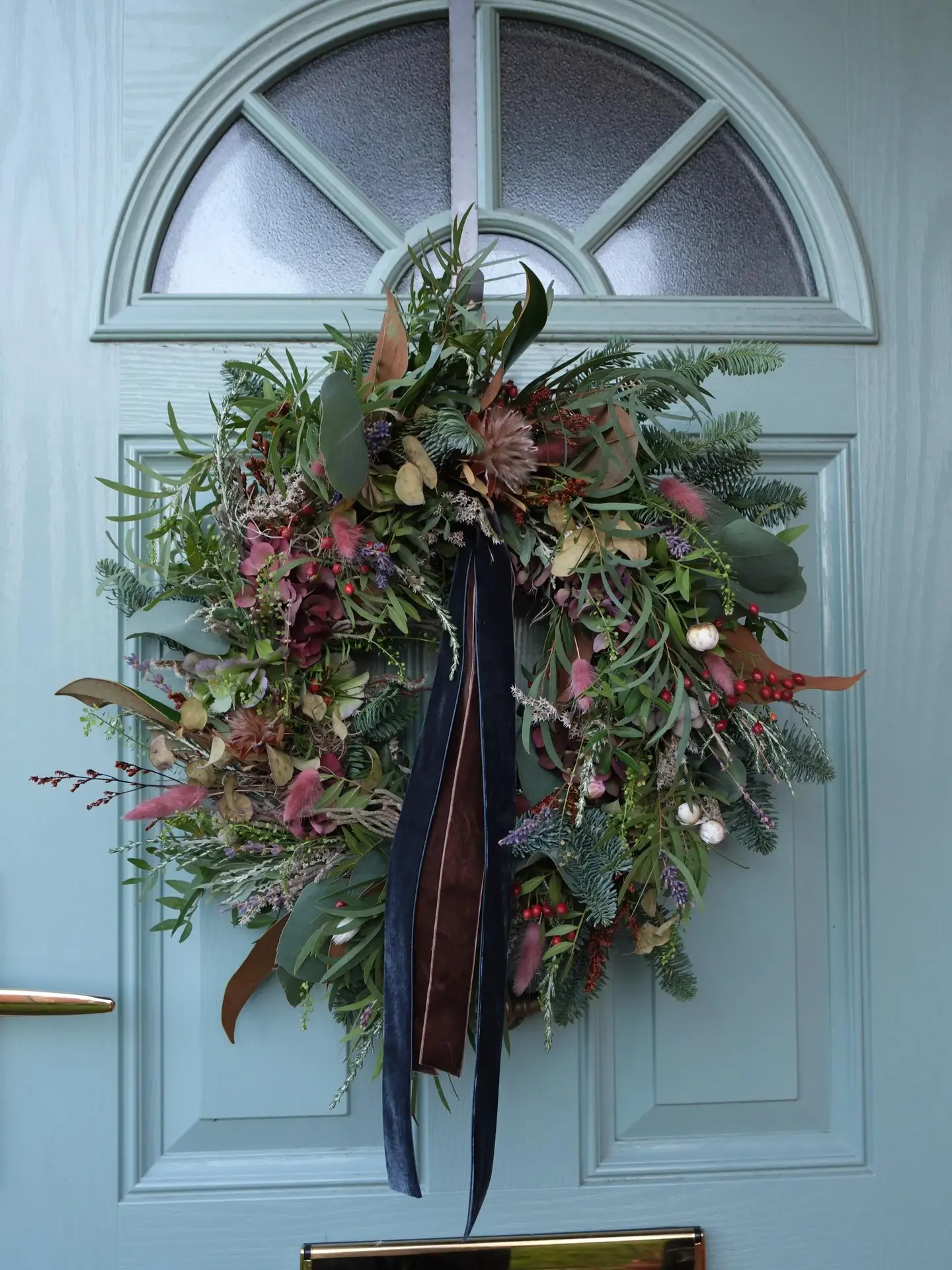 Our ‘Hydrangea' wreath is a truly luxury design, featuring dried/preserved hydrangeas, mixed foliage and dried floral elements, and more!!