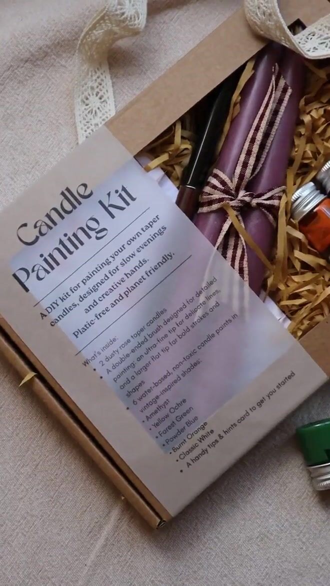 Candle Painting Kit - DIY Painted Candles for Slow, Creative Evenings. Paint your own taper candles with this dreamy DIY candle painting kit - perfect for cosy evenings, mindful moments, or as a unique creative gift. Inside the box, you'll find everything you need to decorate two beautiful taper candles in your own style. Whether you're a total beginner or just want to unwind with something hands-on, this kit invites you to slow down and enjoy the process.
