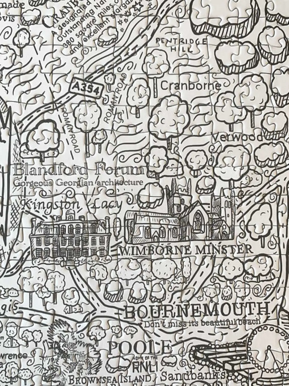 From the rugged coastline to charming villages and bustling towns, this amazingly detailed jigsaw features iconic Dorset locations including the Jurassic Coast, West Bay, Chesil Beach, Portland Bill, Weymouth, Durdle Door, Lulworth Cove, Swanage, and Studland, to name but a few. Dorset truly has it all. Why not take on this stunning jigsaw? It’s the perfect way to plan your next trip — or to decorate your home with a beautiful piece of Dorset art.