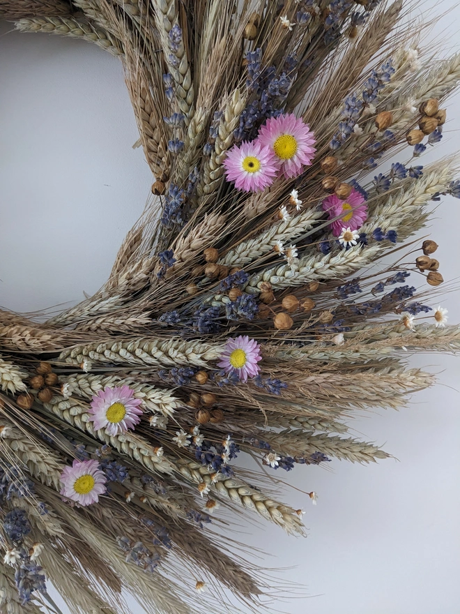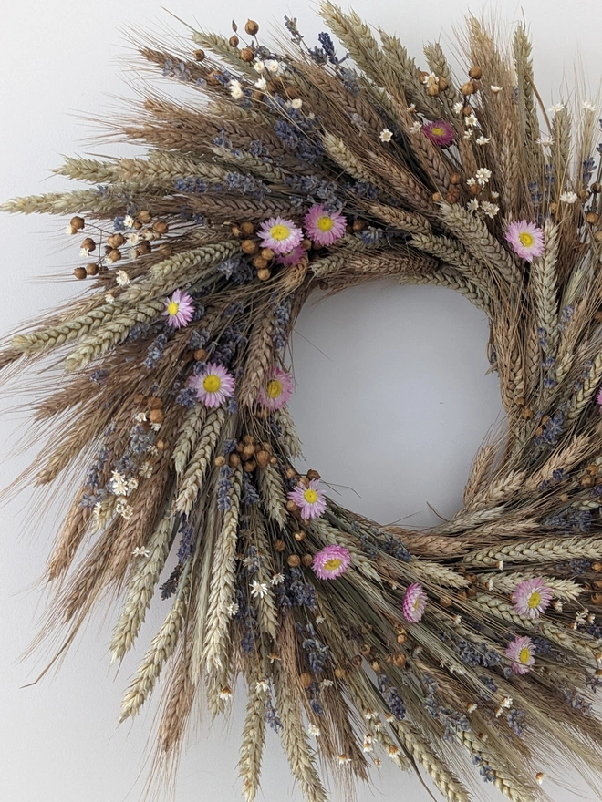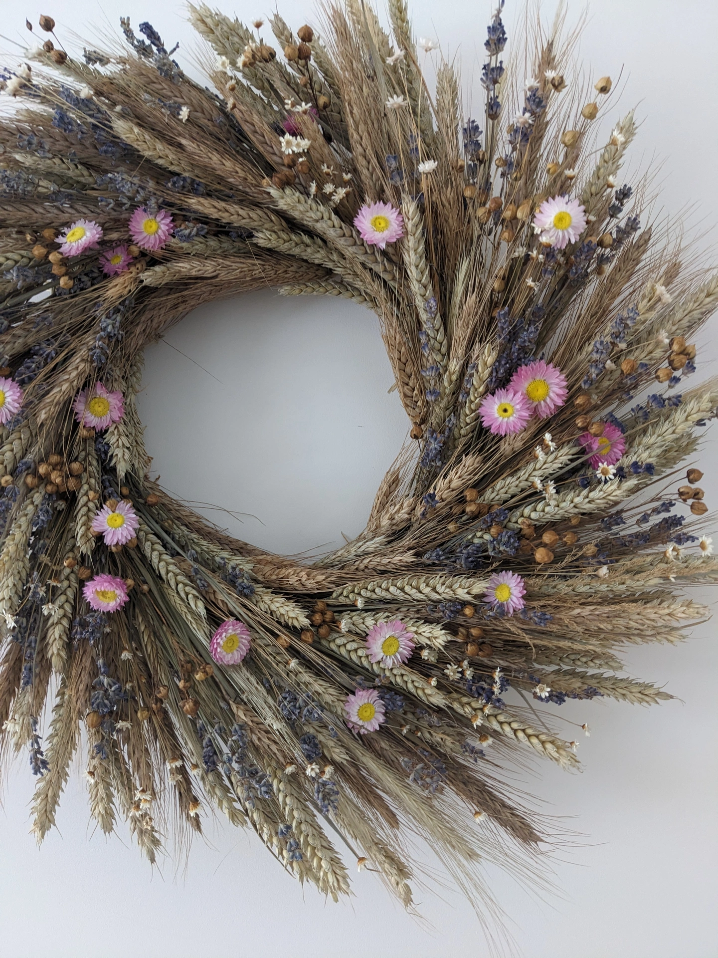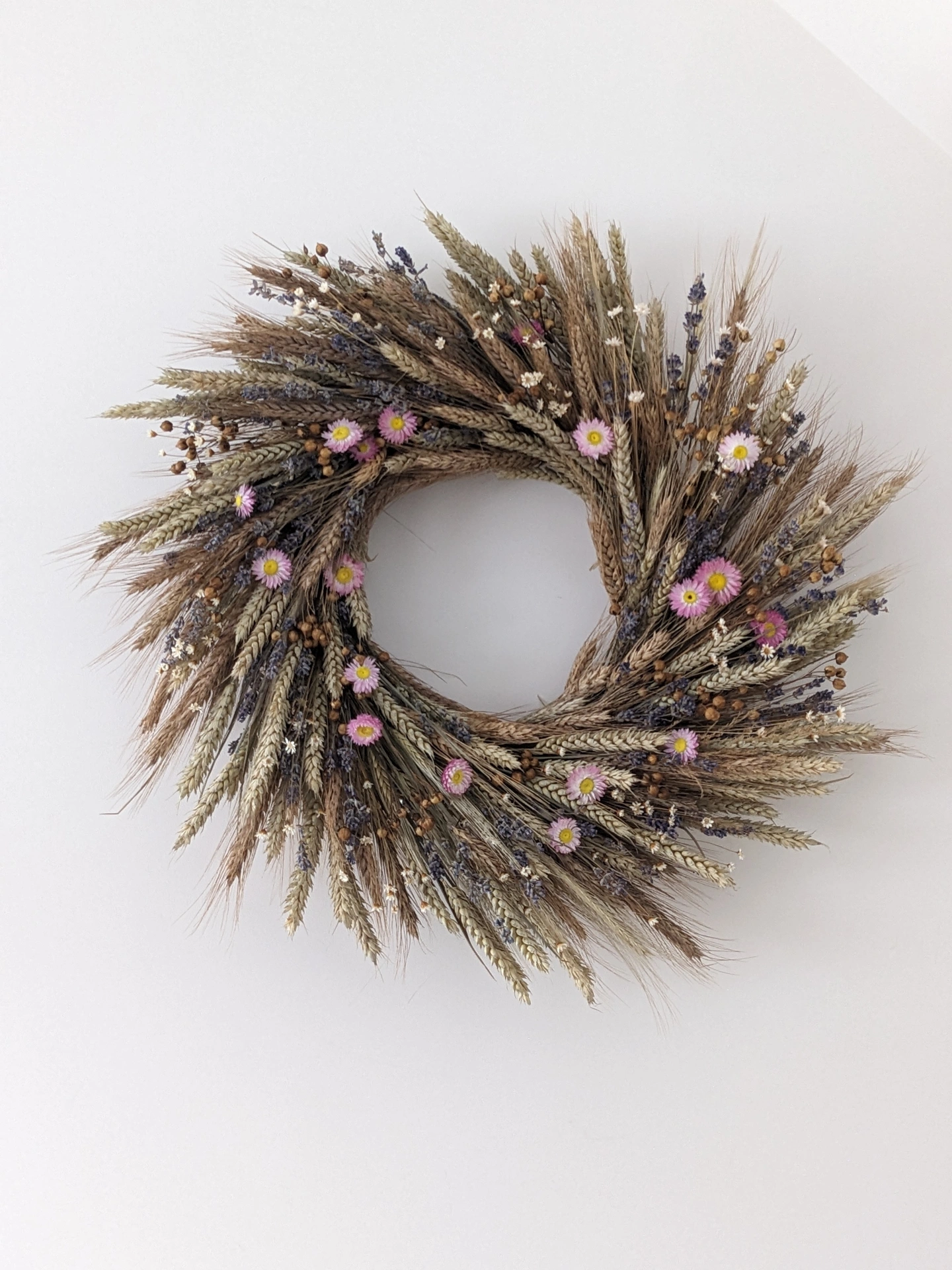 Dried Flower Wreath Soft Tones Wheat & Lavender