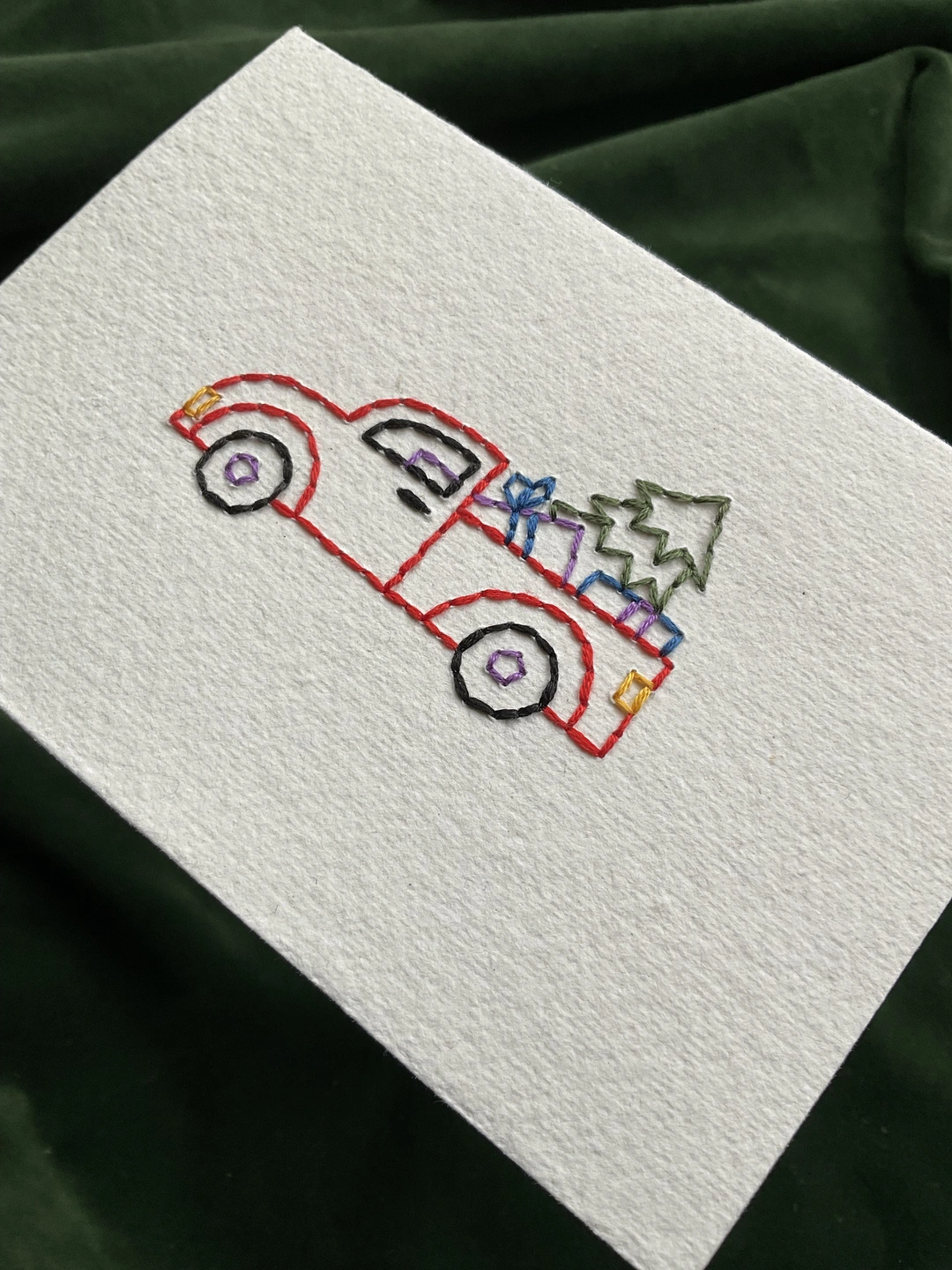'Driving Home For Christmas’ Hand Embroidered Card