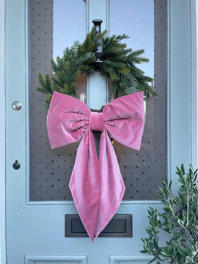 A beautiful oversized bow handmade from a luxurious dusky rose pink cotton velvet.
