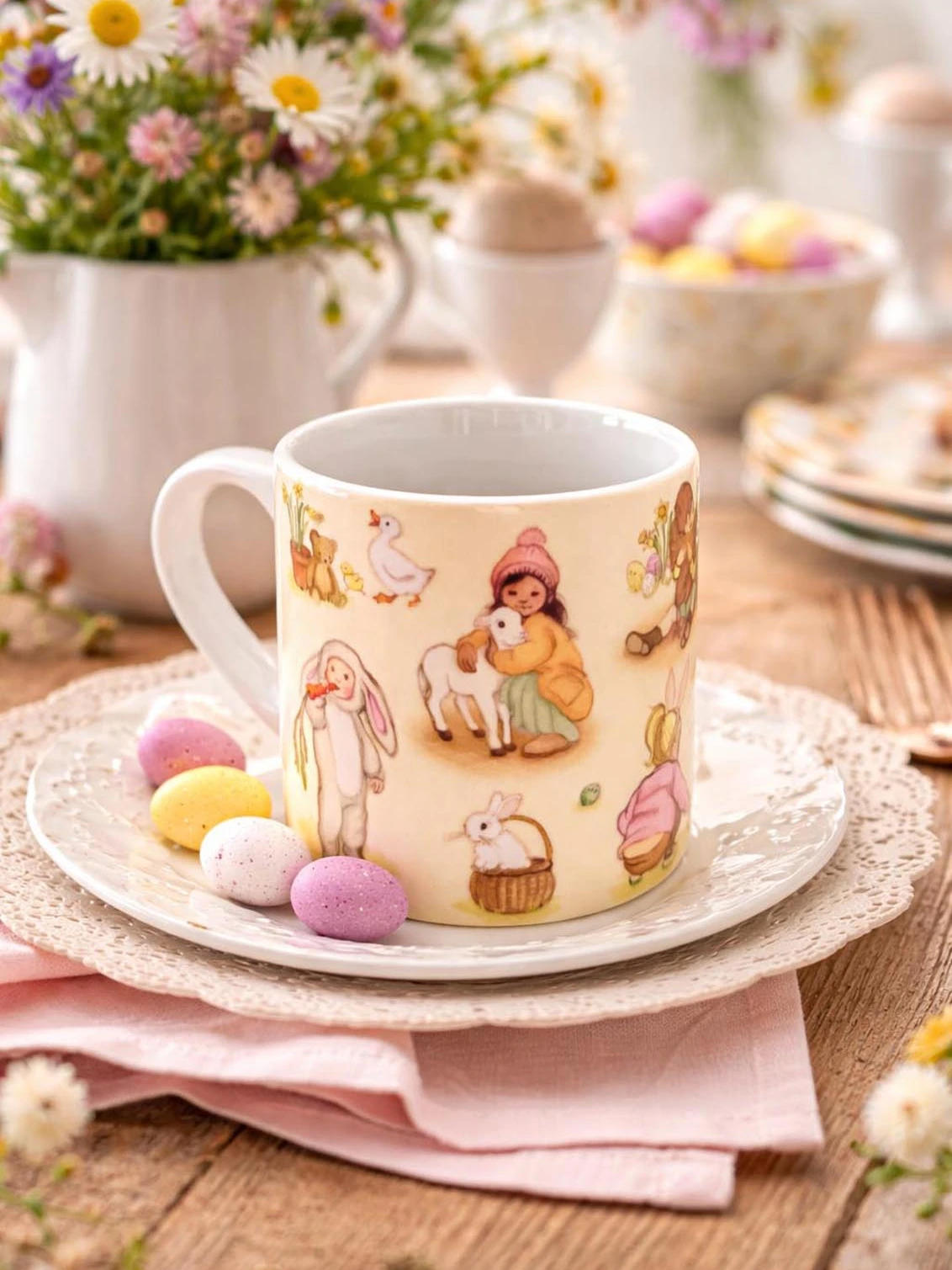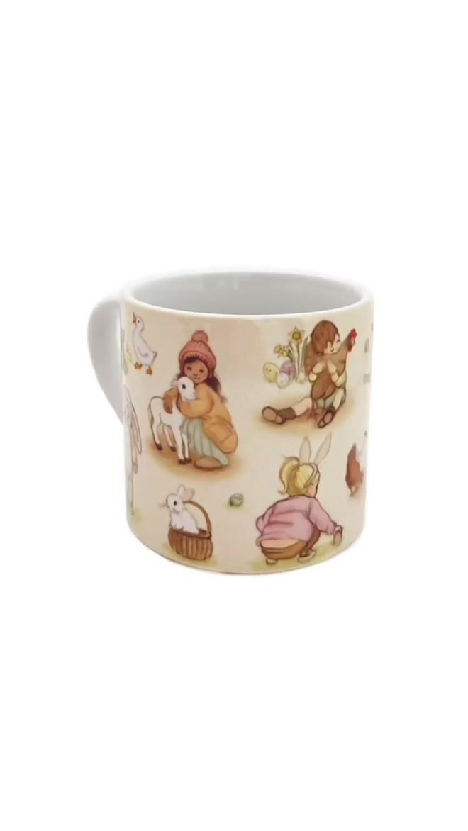 I adore these small ceramic mugs, featuring a wrap design of my original illustration 'Easter Day'