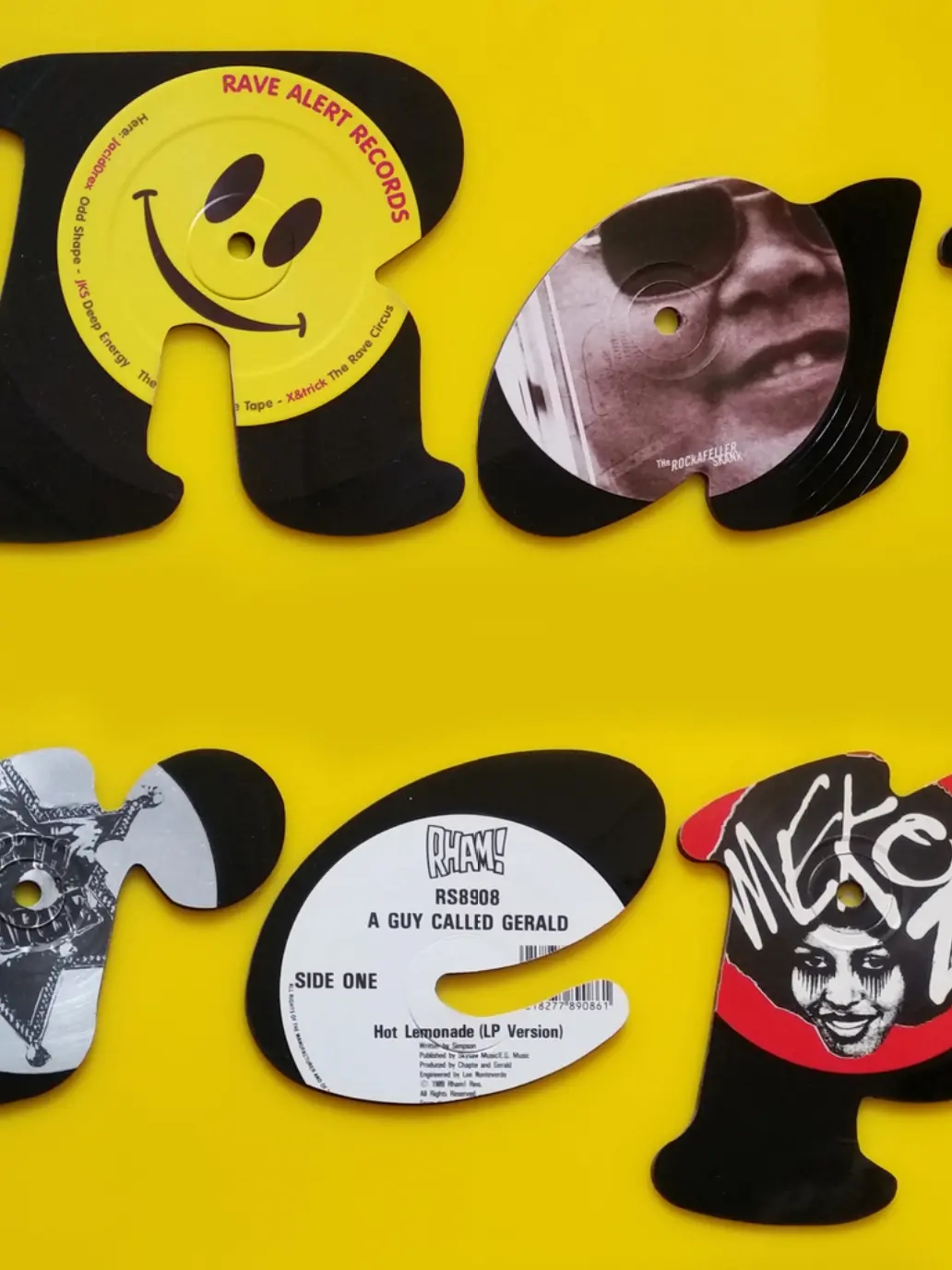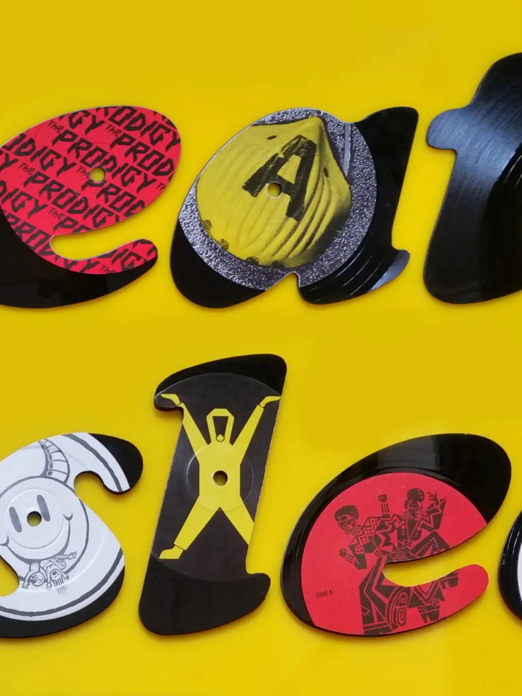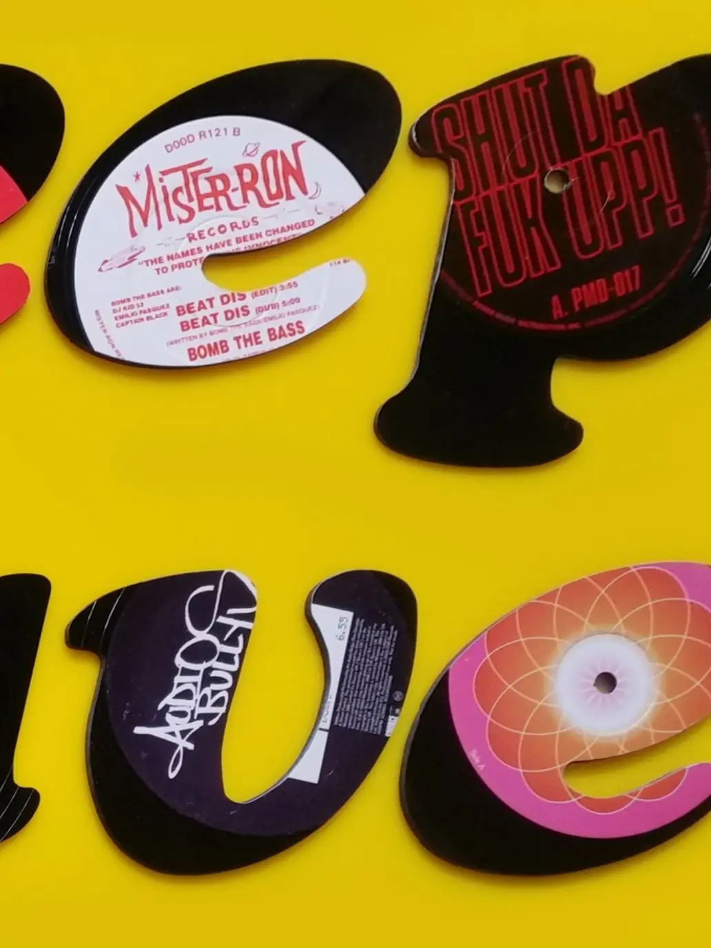 'Eat Sleep Rave Repeat' This piece is made from original vinyl records, 12" House, Acid House and Trance vinyl in a perspex case.