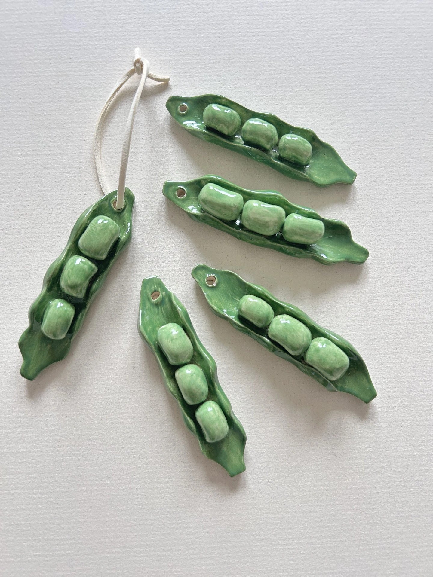 A quirky addition to your tree, these handmade ceramic edamame pods are equal parts elegant and fun. Glazed in glossy green and hung on a soft suede string, they're a fresh take on festive decorating.