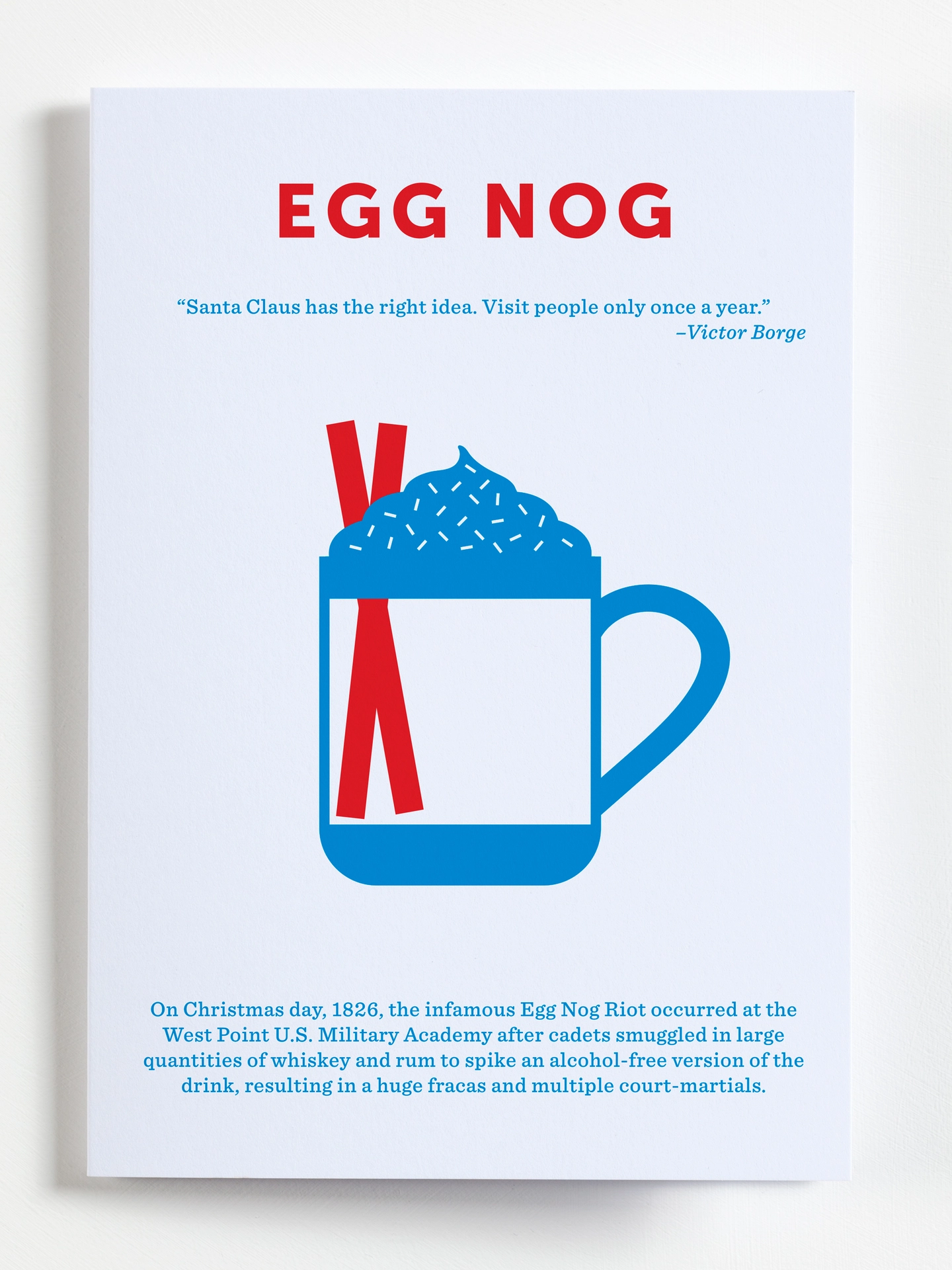 Send a festive "cheers!" with our double sided Christmas Cocktail greeting card - amusing quote and brief history on the front side, full recipe for making the cocktail on the reverse.