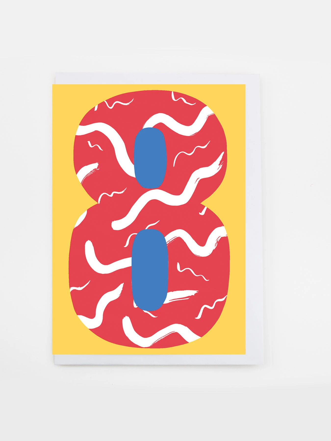 Cute patterned eighth birthday card for the eight-year-old in your life. Designed in Yorkshire and beautifully printed in Sussex.