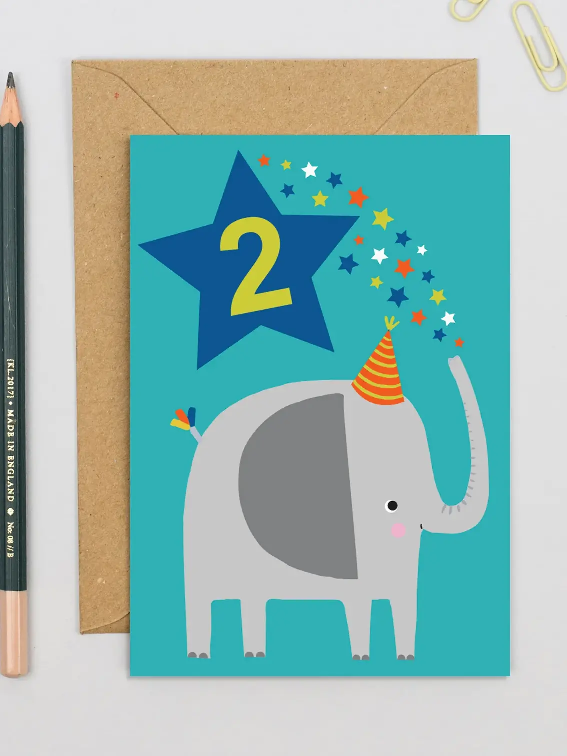 Age 2 Elephant Bright Blue Kid's Birthday Card is backordered and will ship as soon as it is back in stock...