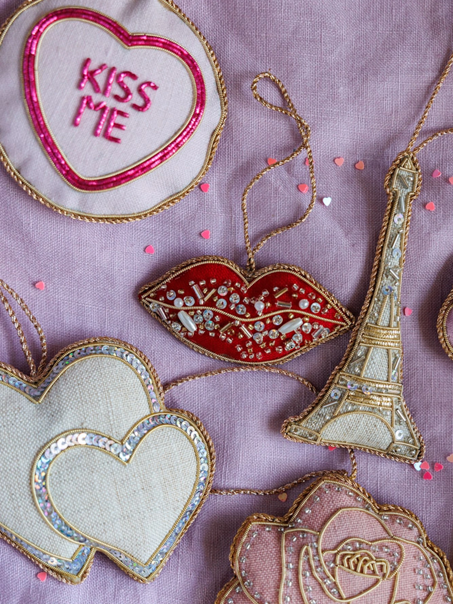 Embroidered Beaded Lips in Irish Linen