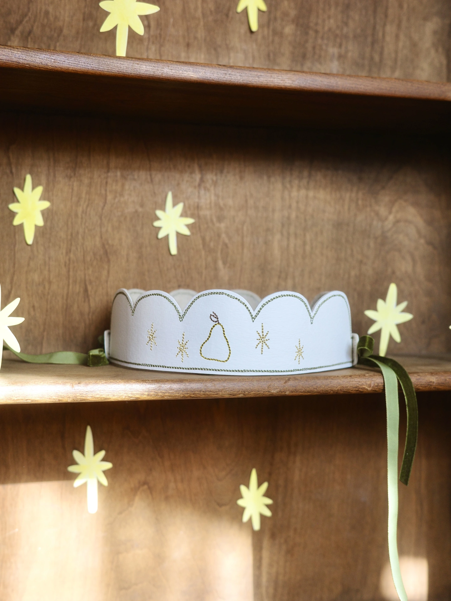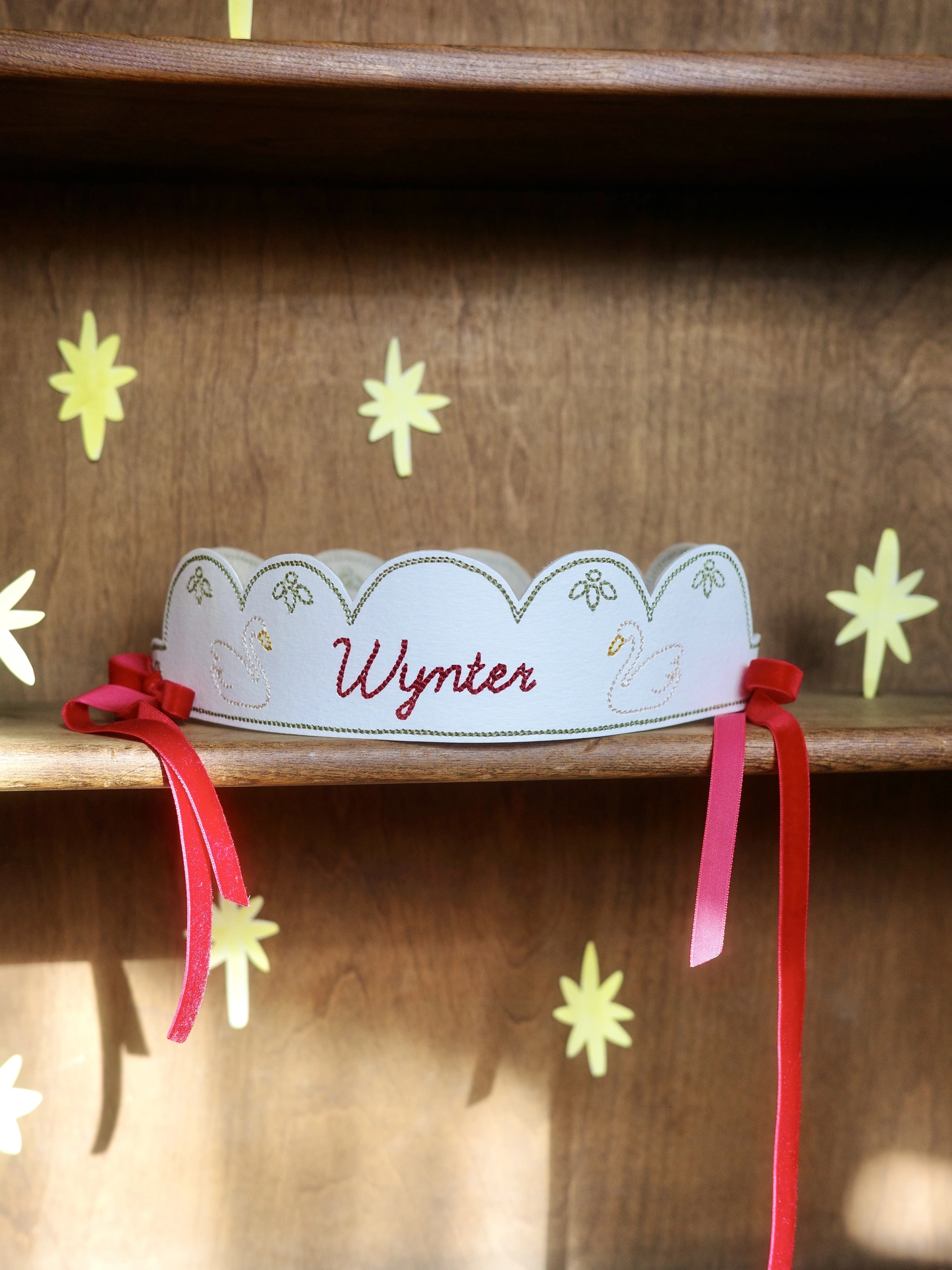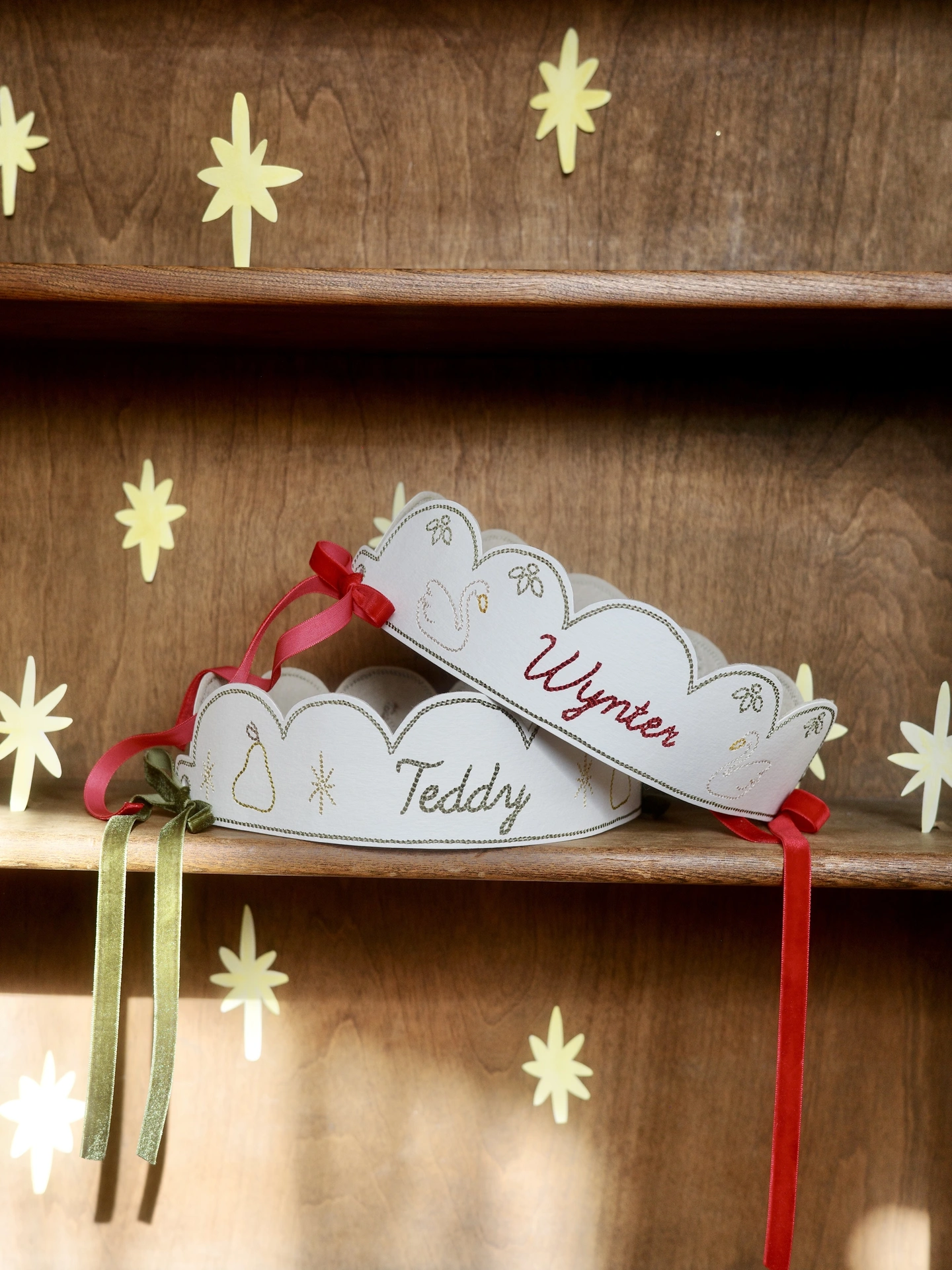 This beautiful embroidered crown is the perfect addition to celebrate life's special moments. Mark Christmas and milestones with this timeless handmade crown - a keepsake to be cherished year after year. Perfect as a gift, it begins a beloved family tradition. Between celebrations, it can be displayed in a child's room, ready to be worn again next year.