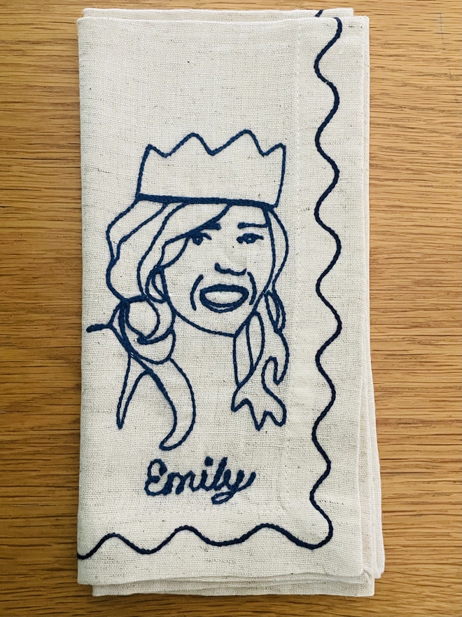Make your Christmas or celebration unforgettable with beautifully hand-embroidered portrait napkins with a fun choice of celebration hats! Each napkin is custom-stitched with your guests’ portraits, and add a crown, santa hat or reindeer antlers,...