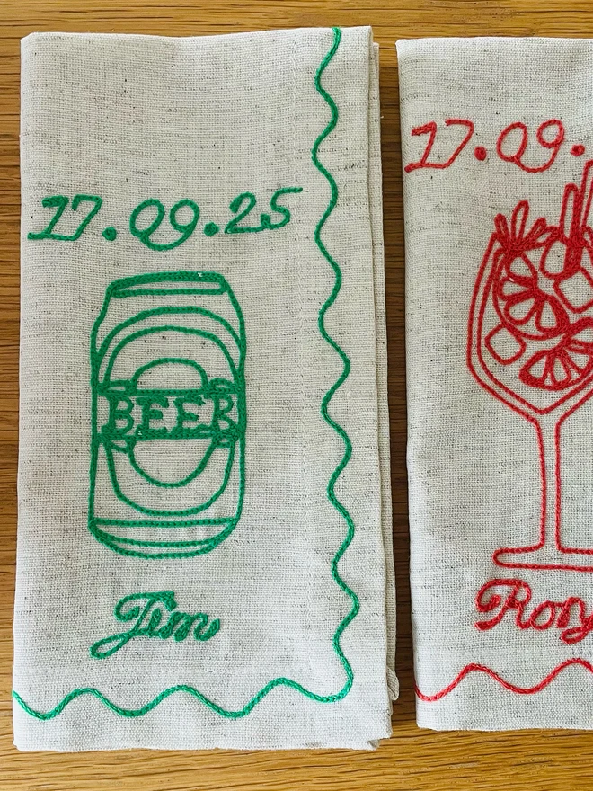 Embroidered Couple's Cocktail Napkins (Set Of 2)
