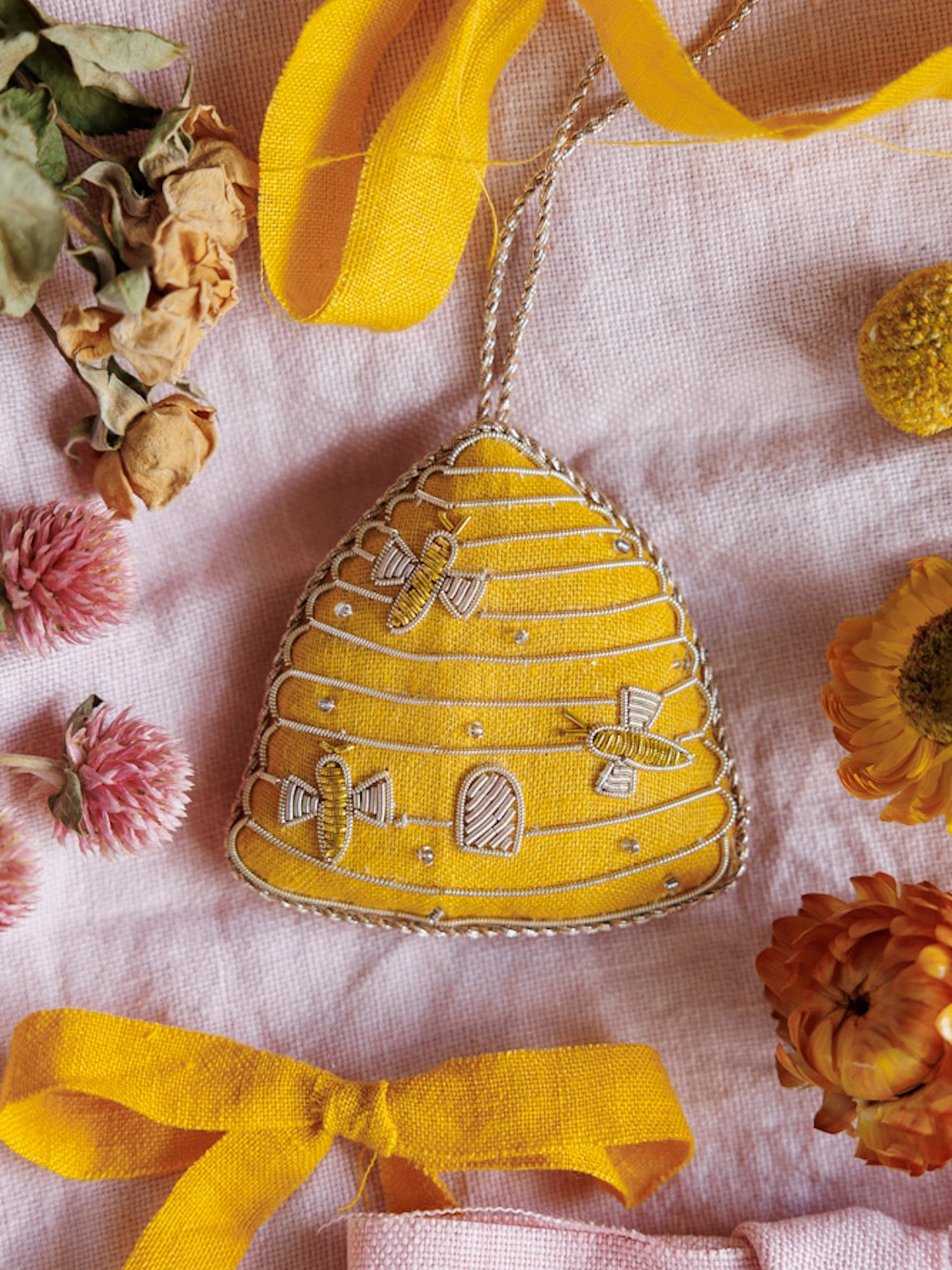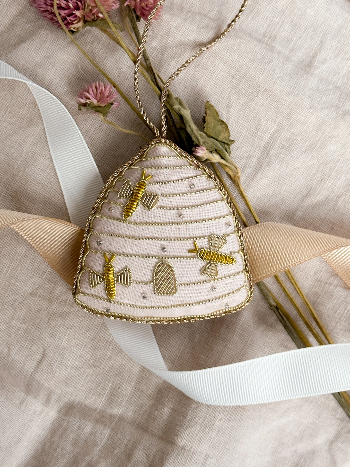 Embroidered Linen Beehive Decoration