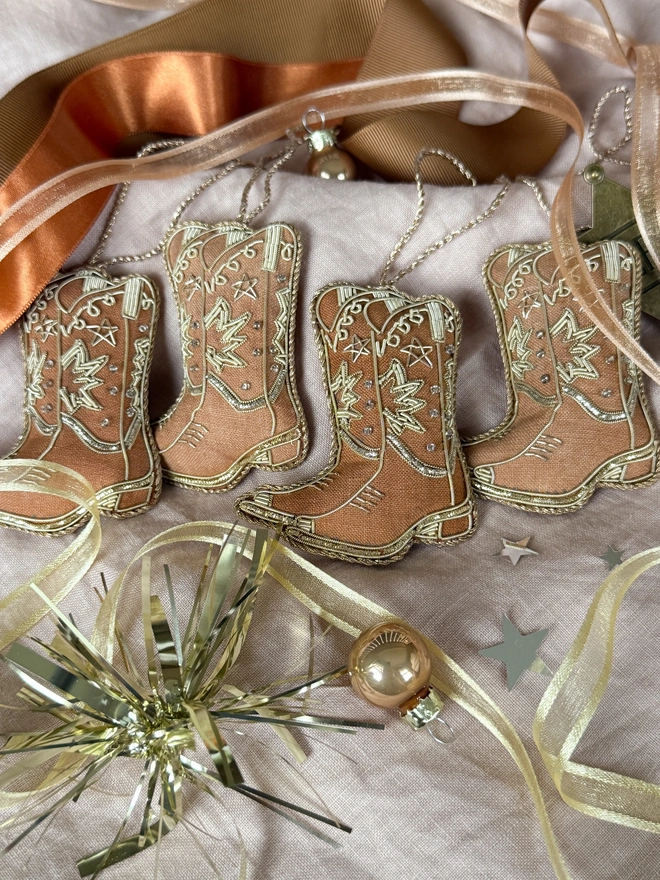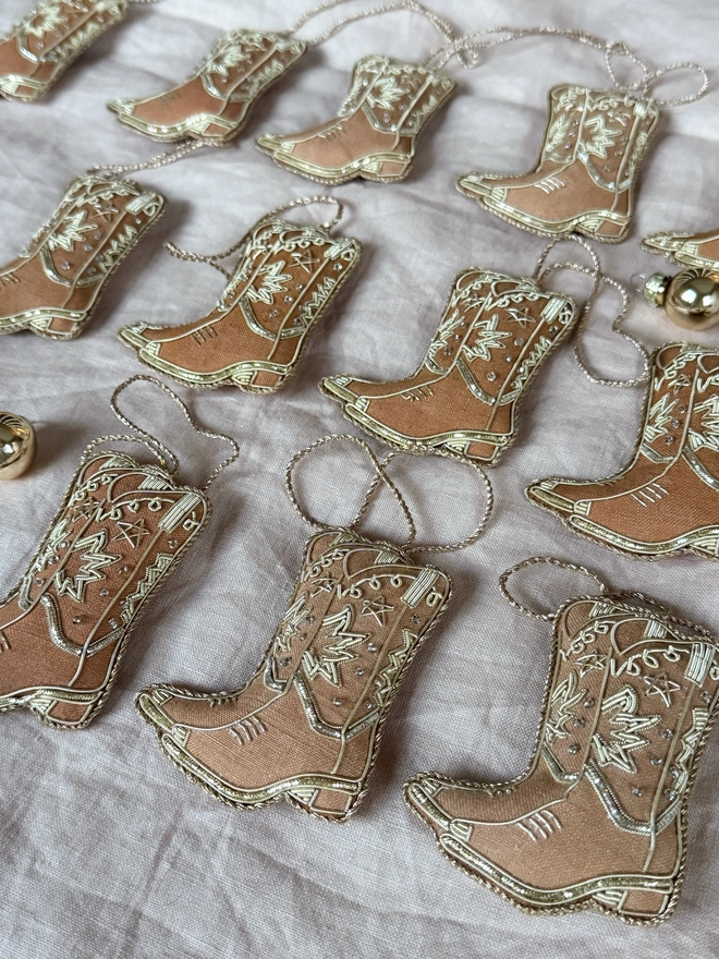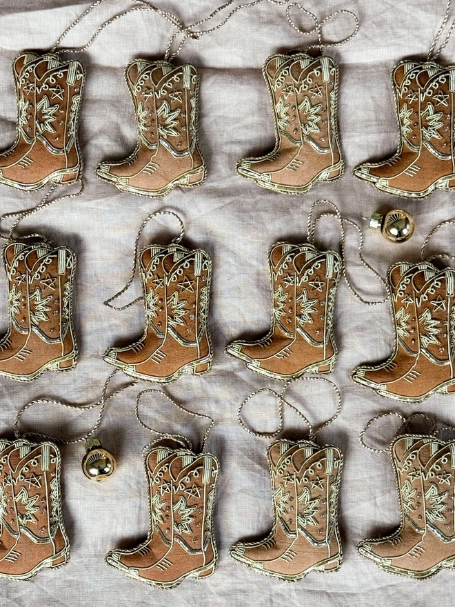 Luxury artisan ornaments created from a source of recycled, sustainable Irish Linen. We use a mixture of vintage, local mill dead stock rolls from one of the last remaining linen mills still active in Ireland today, repurposed antique tablecloths, and off cuts from our own cushion making.