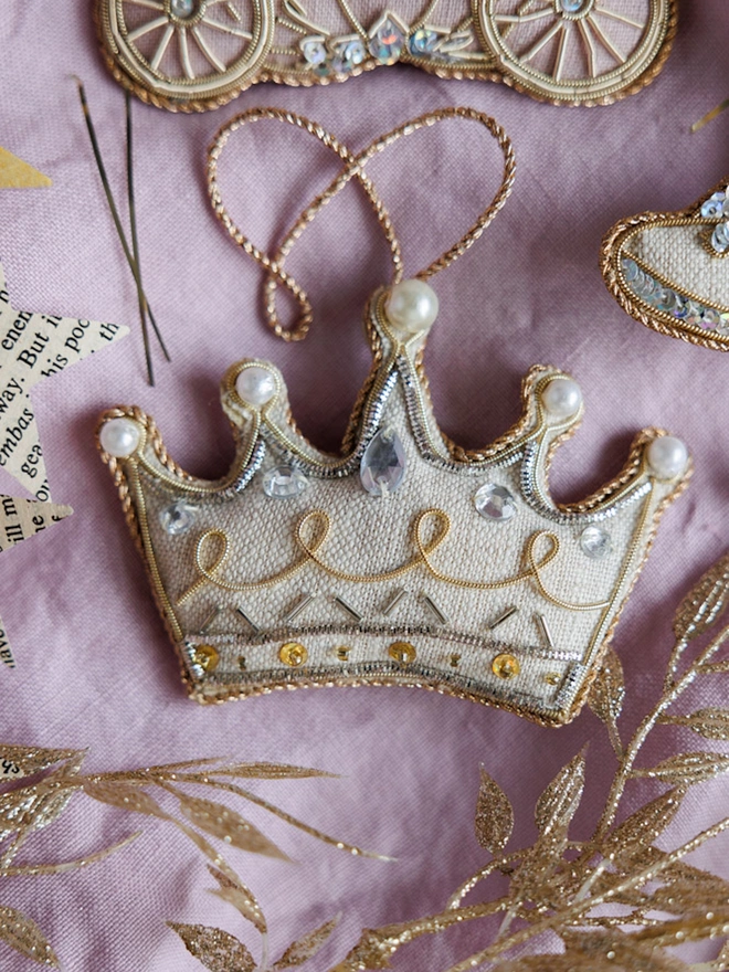The perfect ornament or gift for any Swiftie! Luxury artisan ornaments created from a source of recycled, sustainable Irish Linen. We use a mixture of vintage, local mill deadstock rolls from one of the last remaining linen mills still active in Ireland today, repurposed antique tablecloths, and off cuts from our own cushion making.