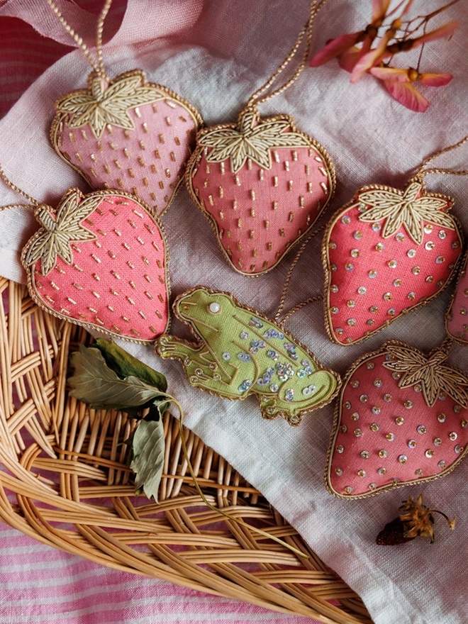 Luxury artisan ornaments created from a source of recycled, sustainable Irish Linen. We use a mixture of vintage, local mill deadstock rolls from one of the last remaining linen mills still active in Ireland today, repurposed antique tablecloths, and off cuts from our own cushion making.