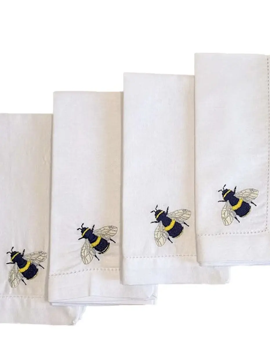 EMBROIDERED LINEN NAPKINS - BEES (set of 4)