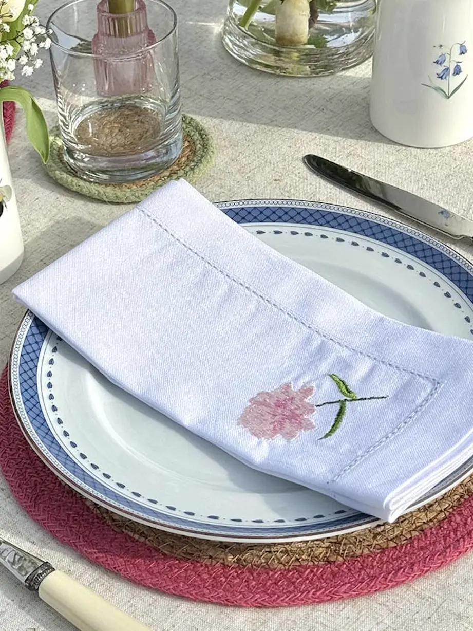 EMBROIDERED LINEN NAPKINS - GARDEN FLOWERS (set of 4)