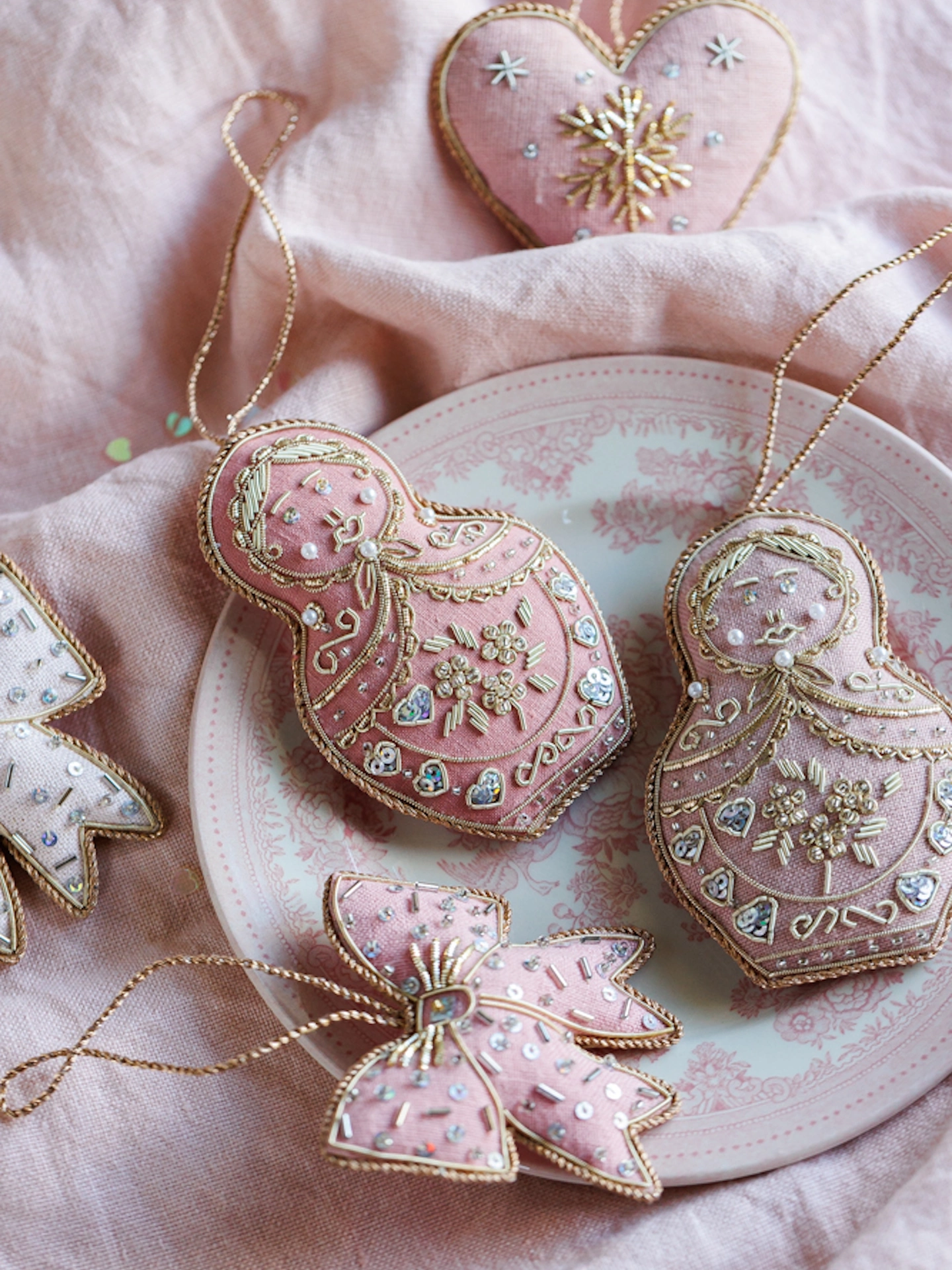 Also known asLuxury artisan ornaments created from a source of recycled, sustainable Irish Linen. We use a mixture of vintage, local mill deadstock rolls from one of the last remaining linen mills still active in Ireland today, repurposed antique tablecloths, and off cuts from our own cushion making.