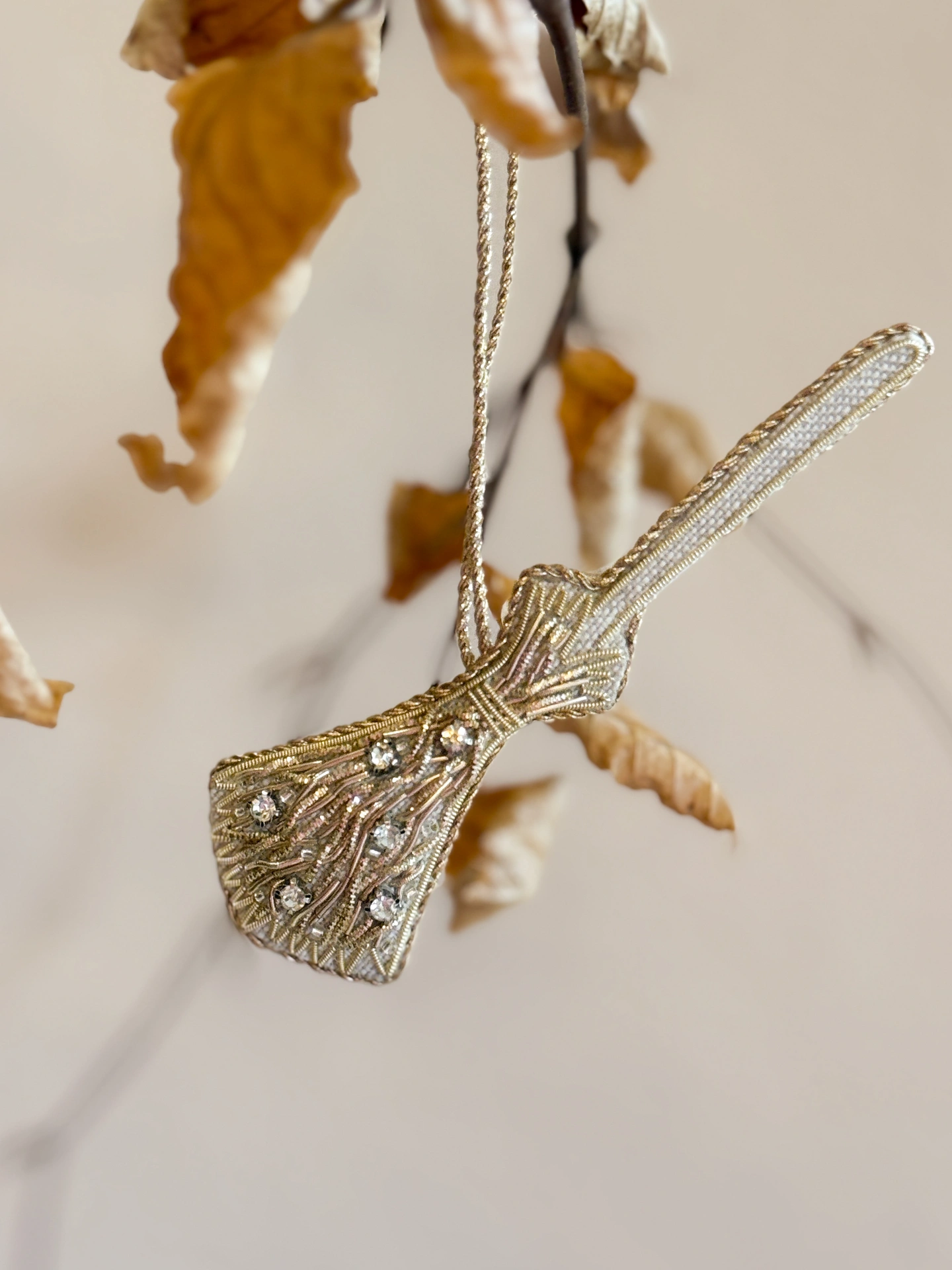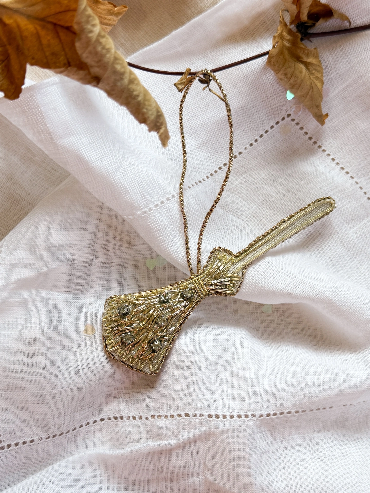 Embroidered Linen Witches' Broomstick Decoration