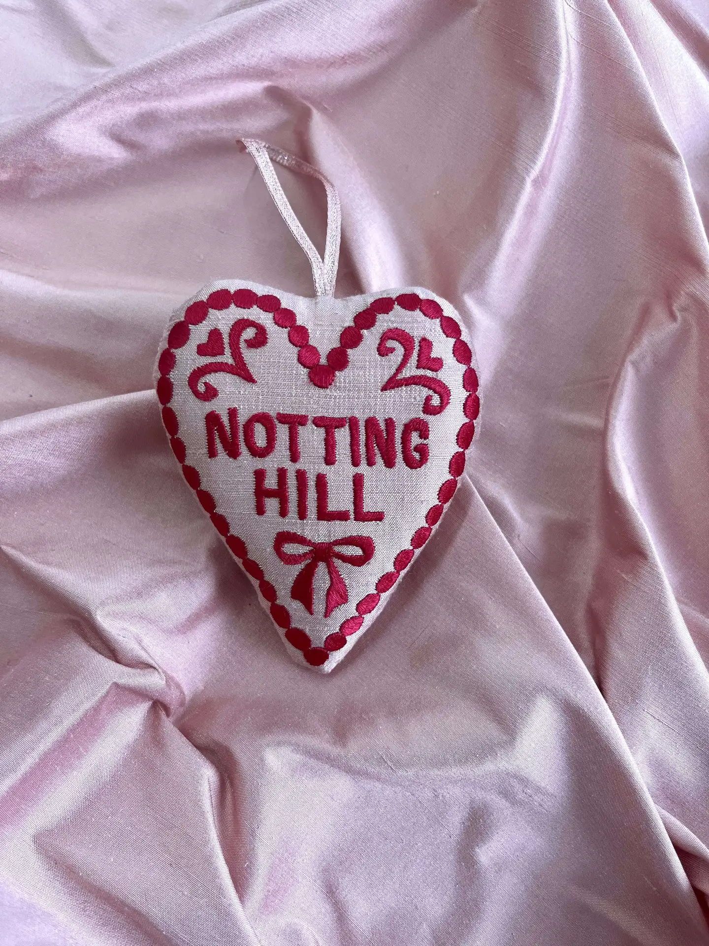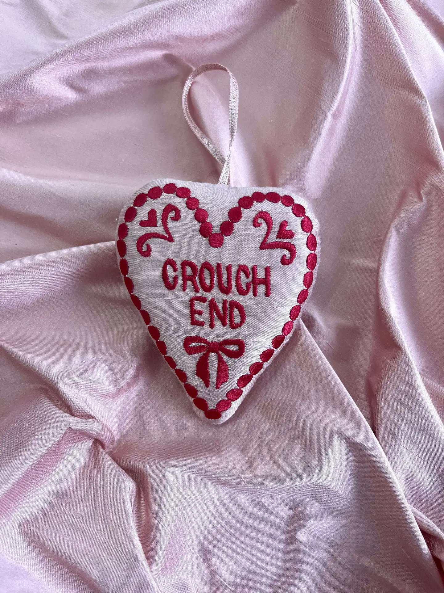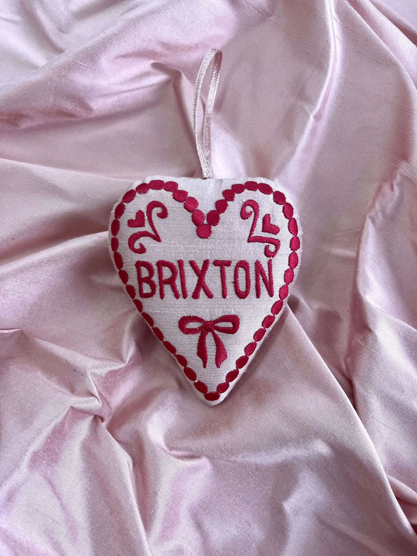 Freehand embroidered dupion silk heart ornaments for your favourite places in London!...