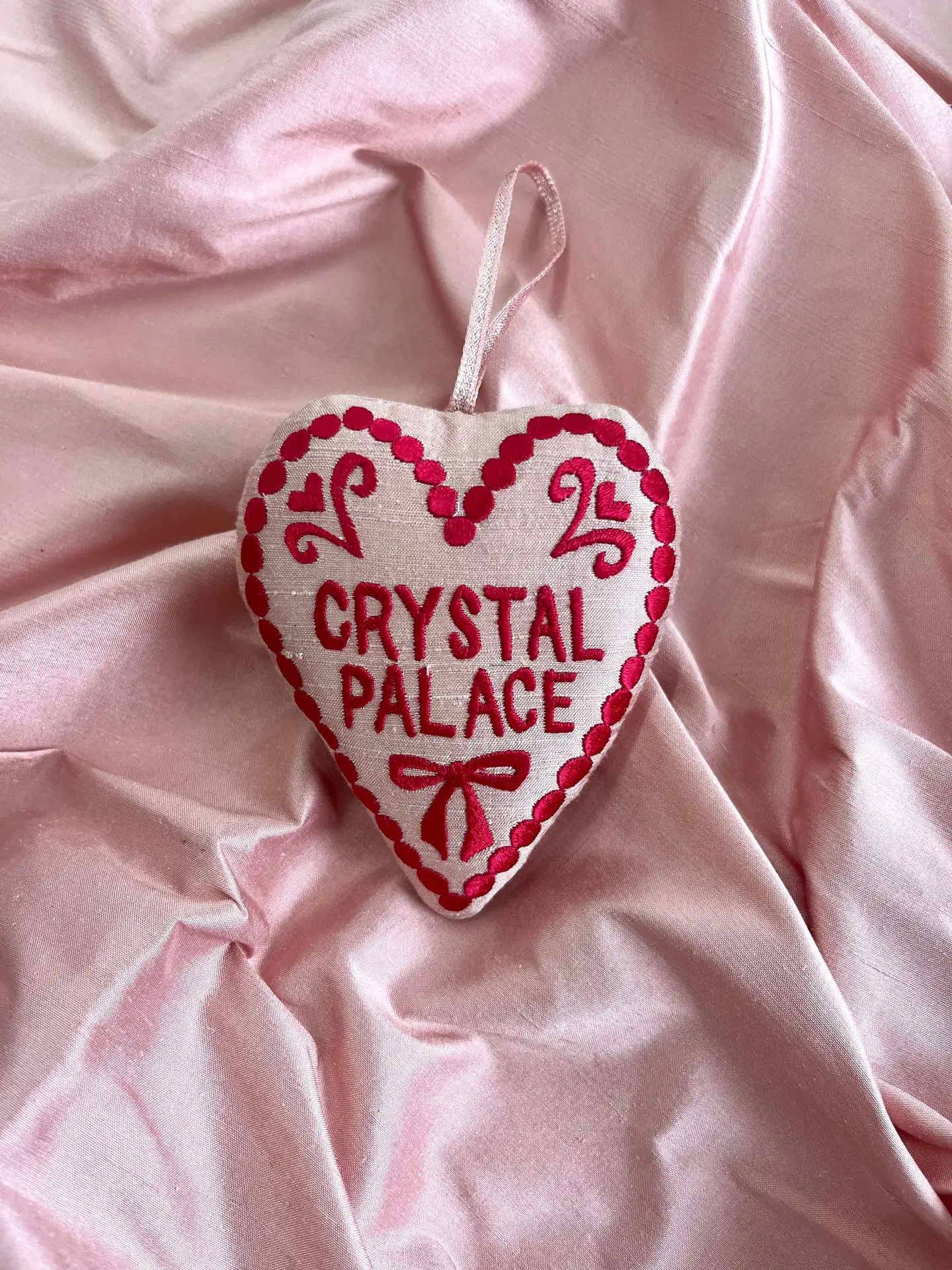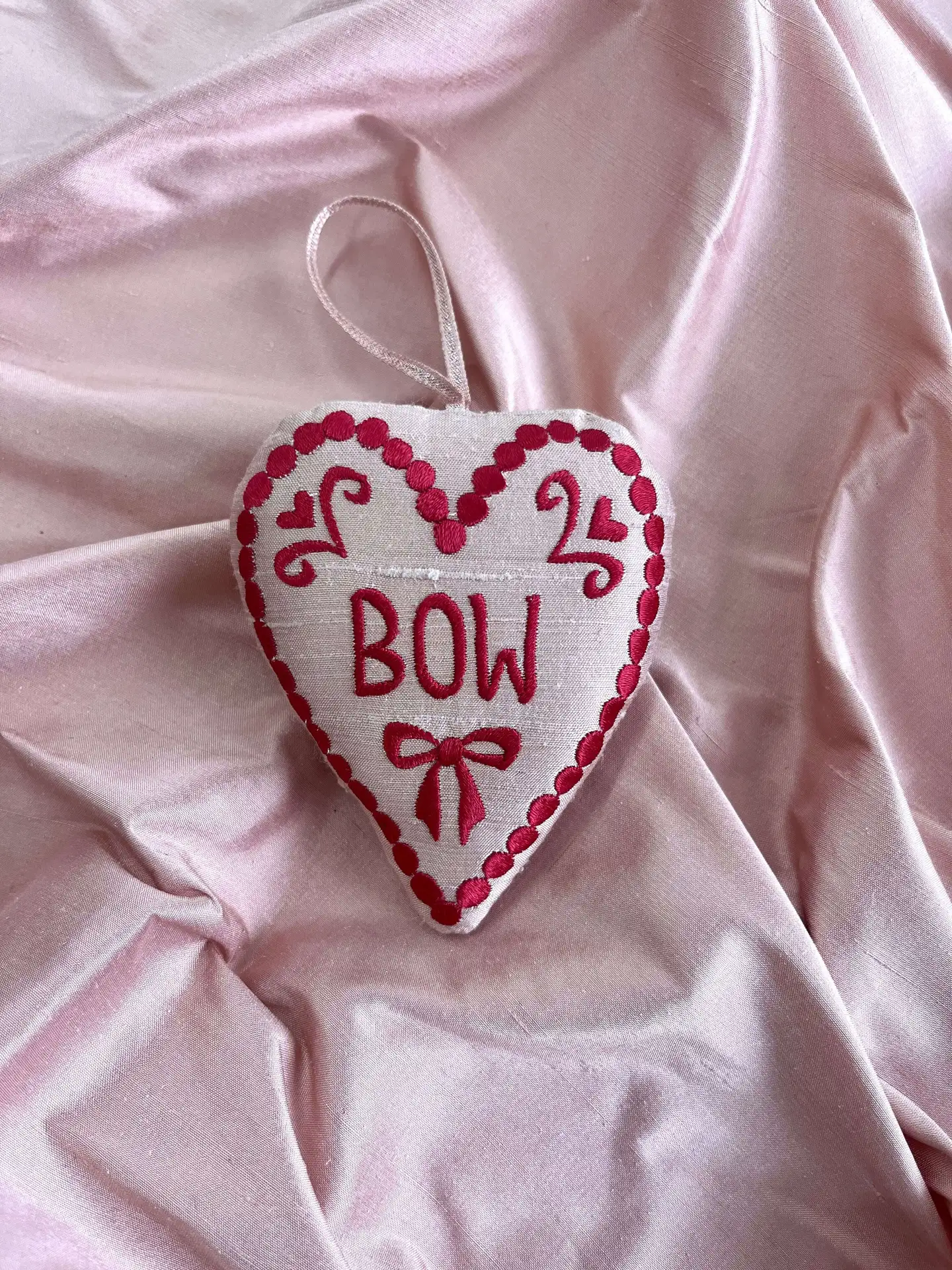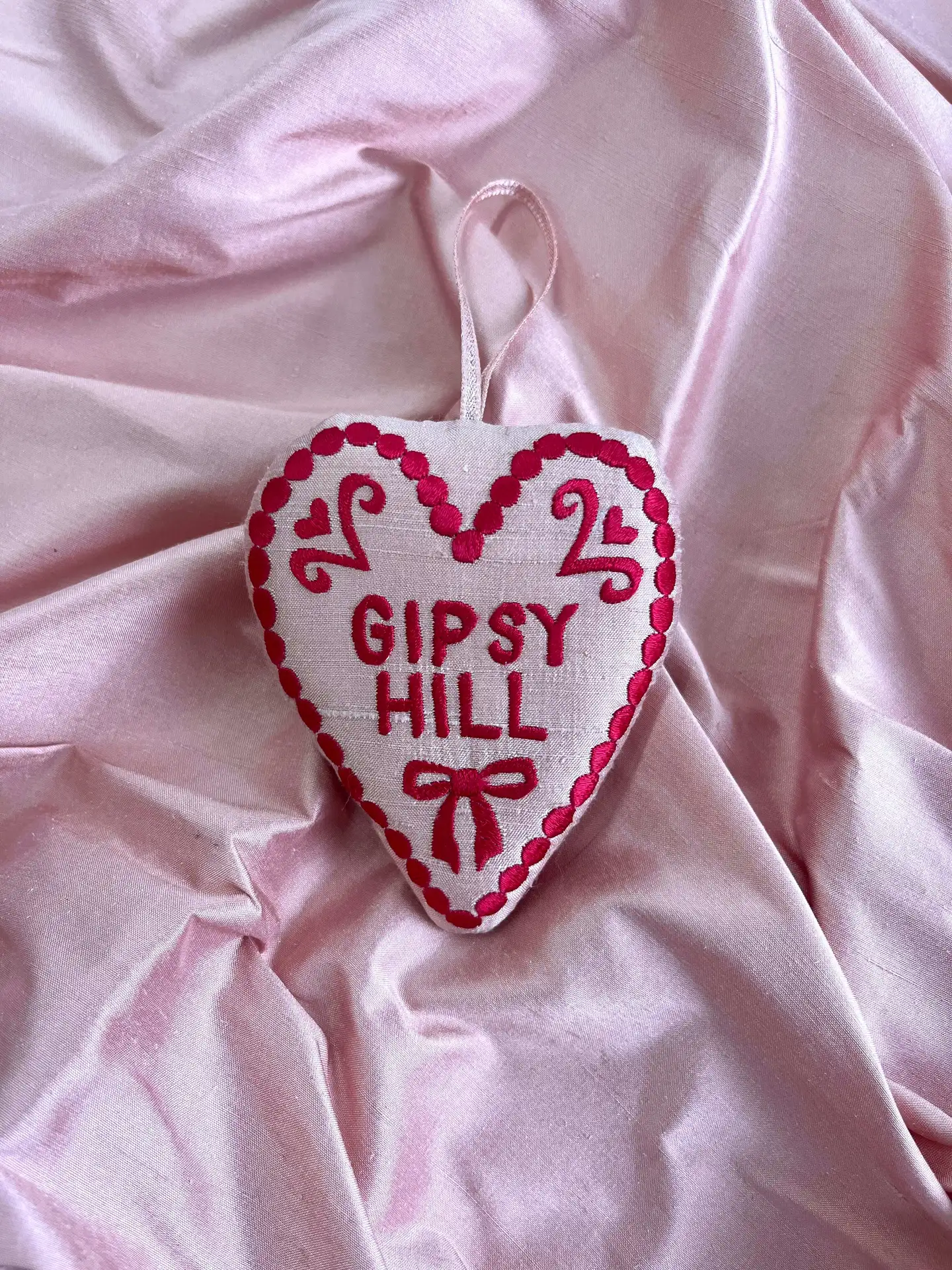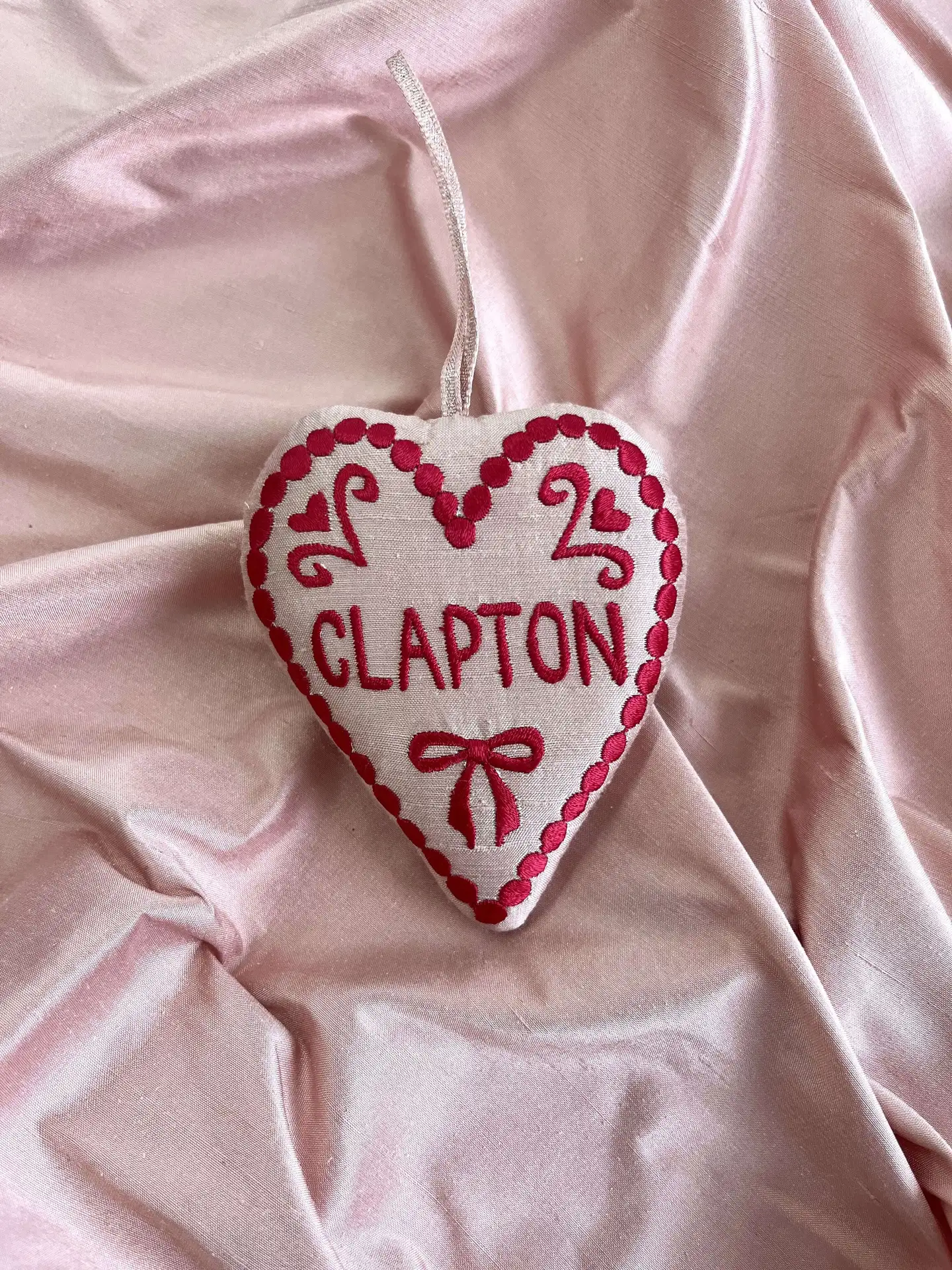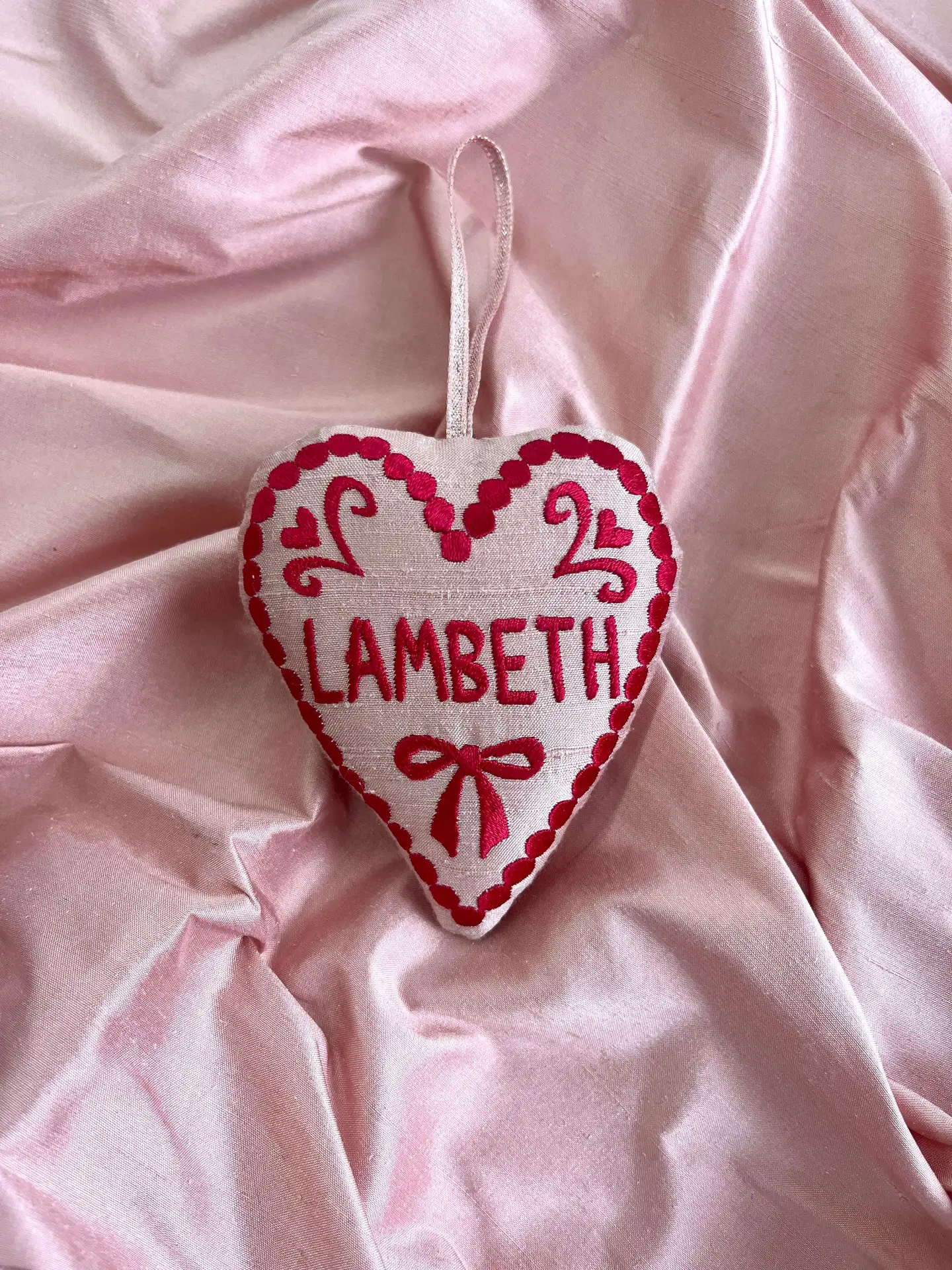 Personalised Embroidered Name Silk Heart Hanging Decoration
