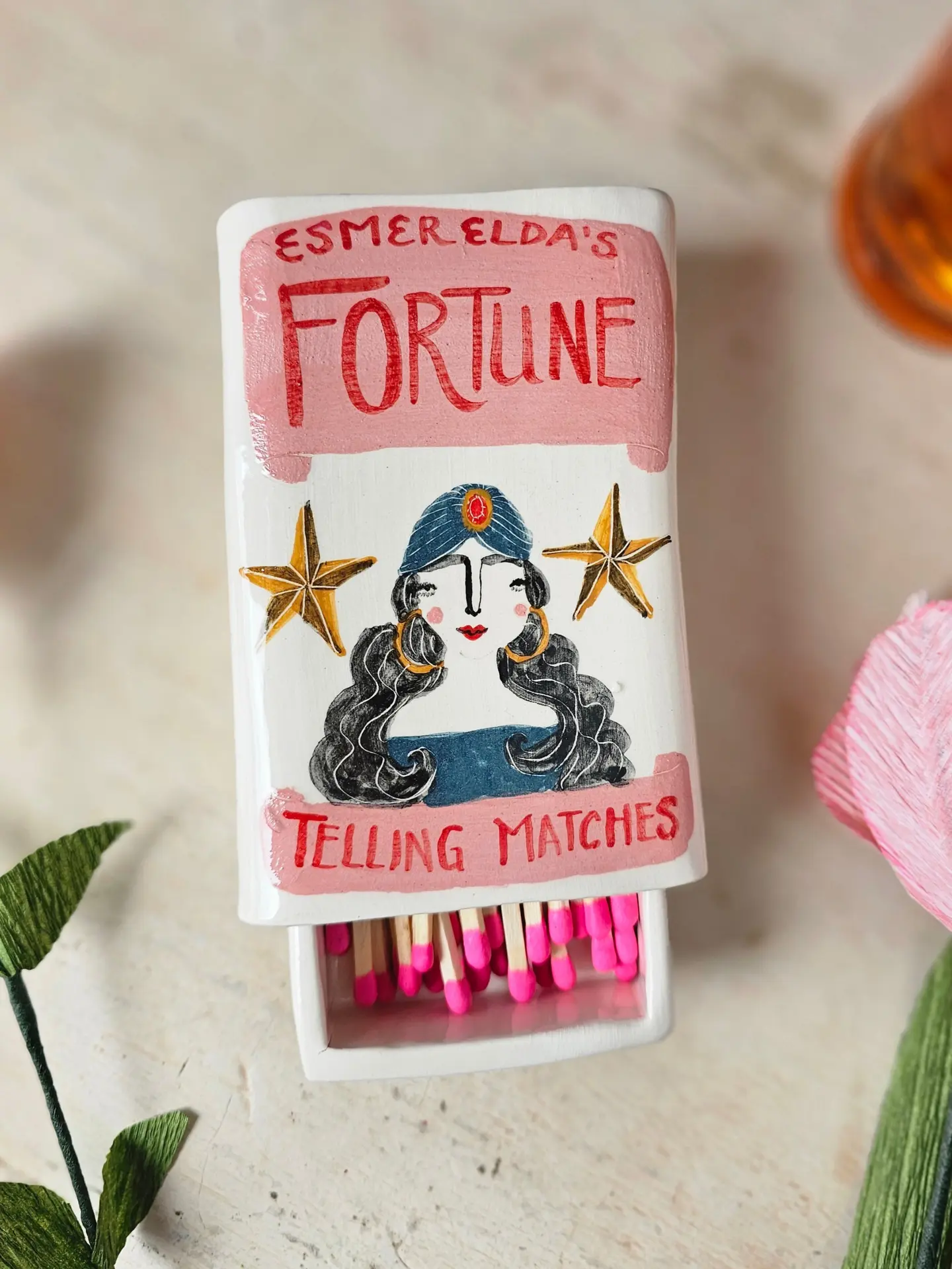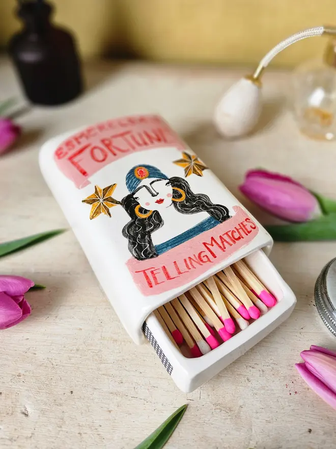 Esmerelda is a powerful soothsayer, she's predicted at least 4 real life futures in her career and she's ready for the next. Each matchbox comes with your very own unique psychic reading from Esmerelda. Please note Brimble Studio takes no responsibility for decisions made based on Esmerelda's readings.
