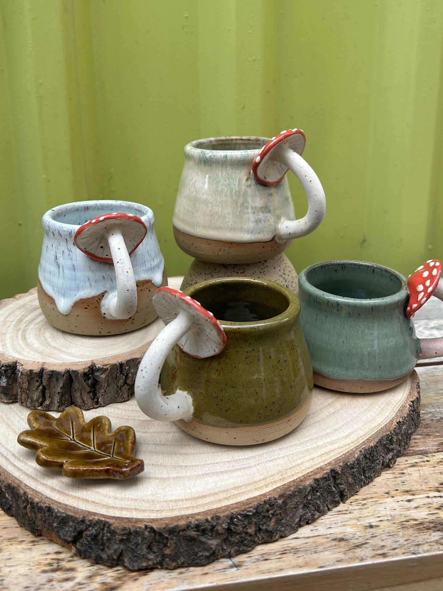 This handcrafted ceramic espresso mug features a sculpted mushroom as the handle, adding a whimsical, woodland twist to your daily coffee ritual...