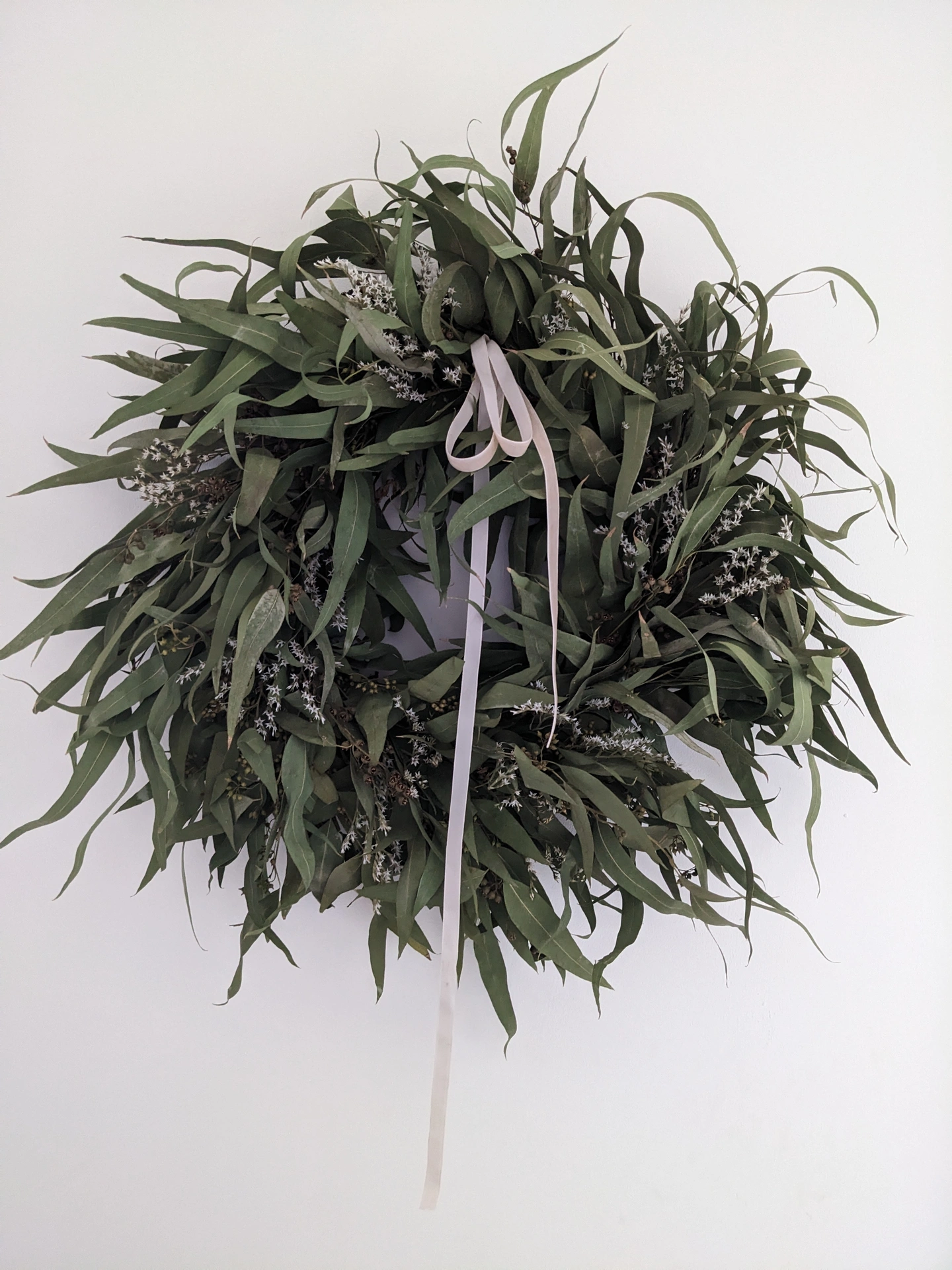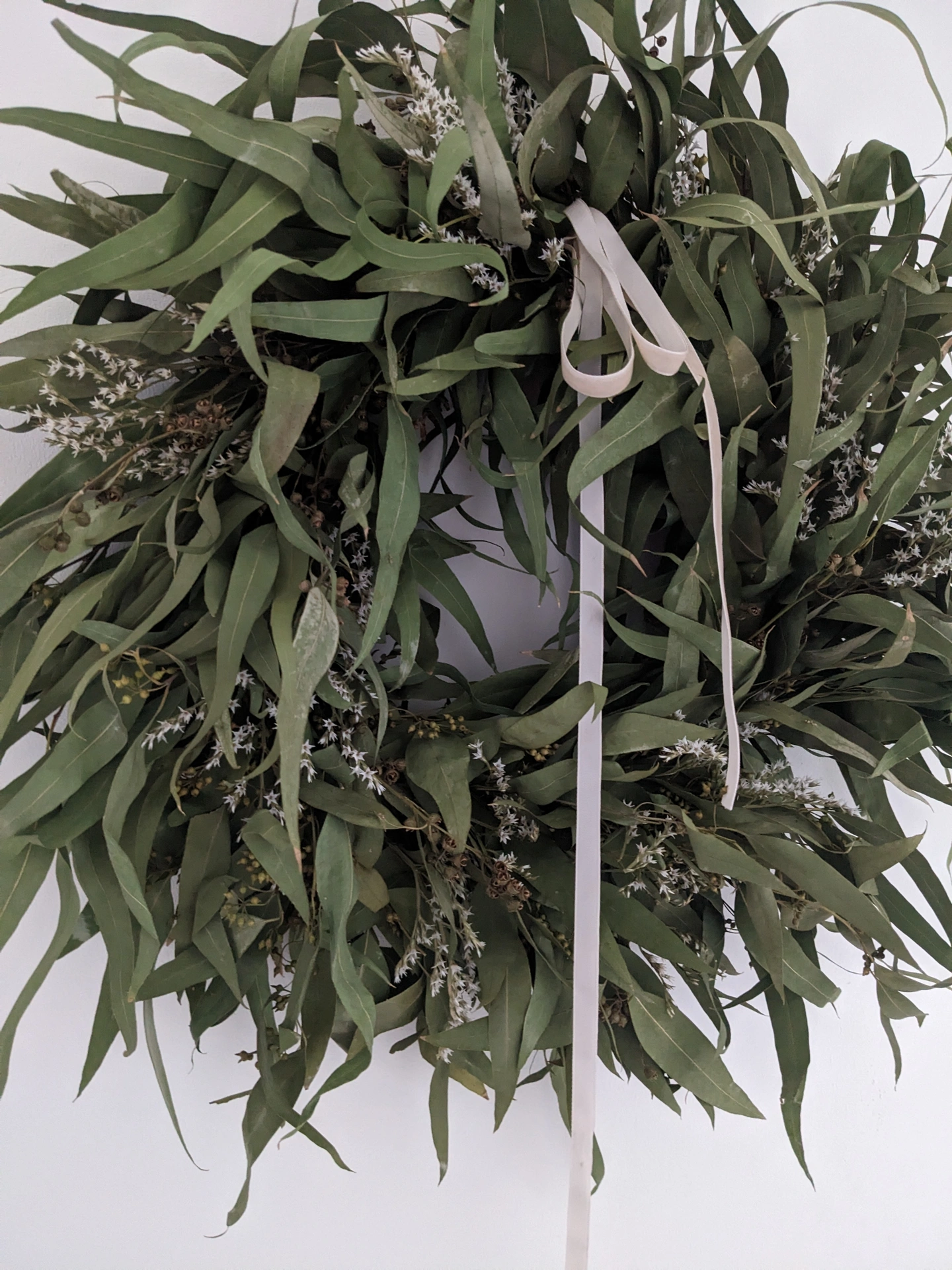Eucalyptus & White Statice Flower Wreath – 50cm