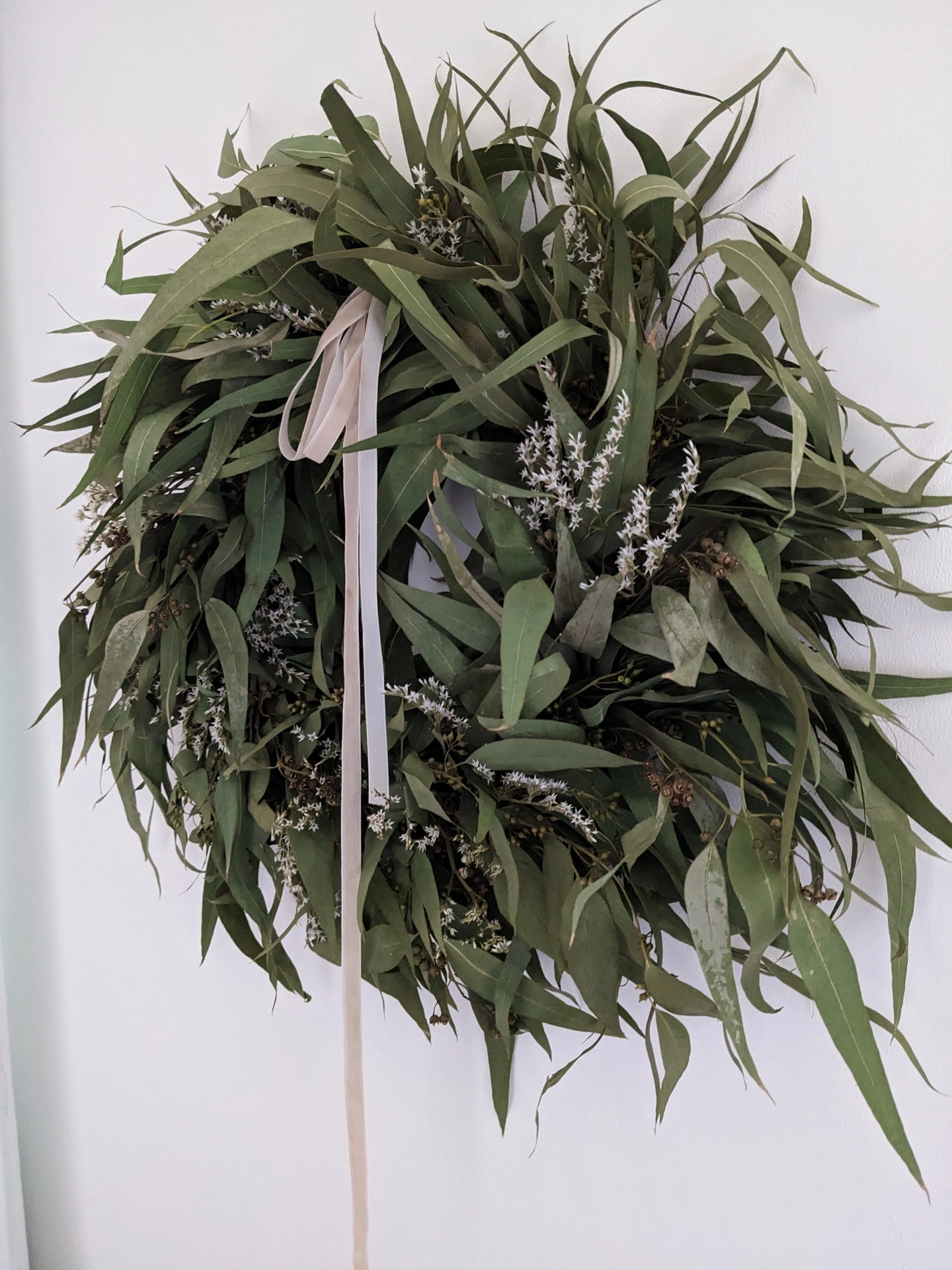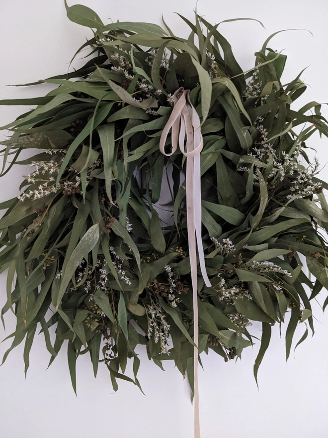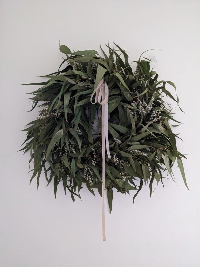 Eucalyptus & White Statice Flower Wreath – 50cm