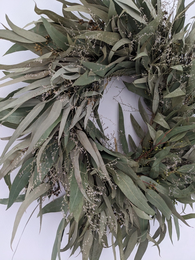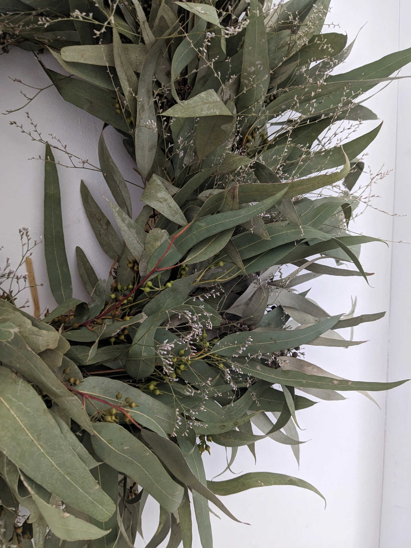 Eucalyptus & White Statice Flower Wreath – 60cm