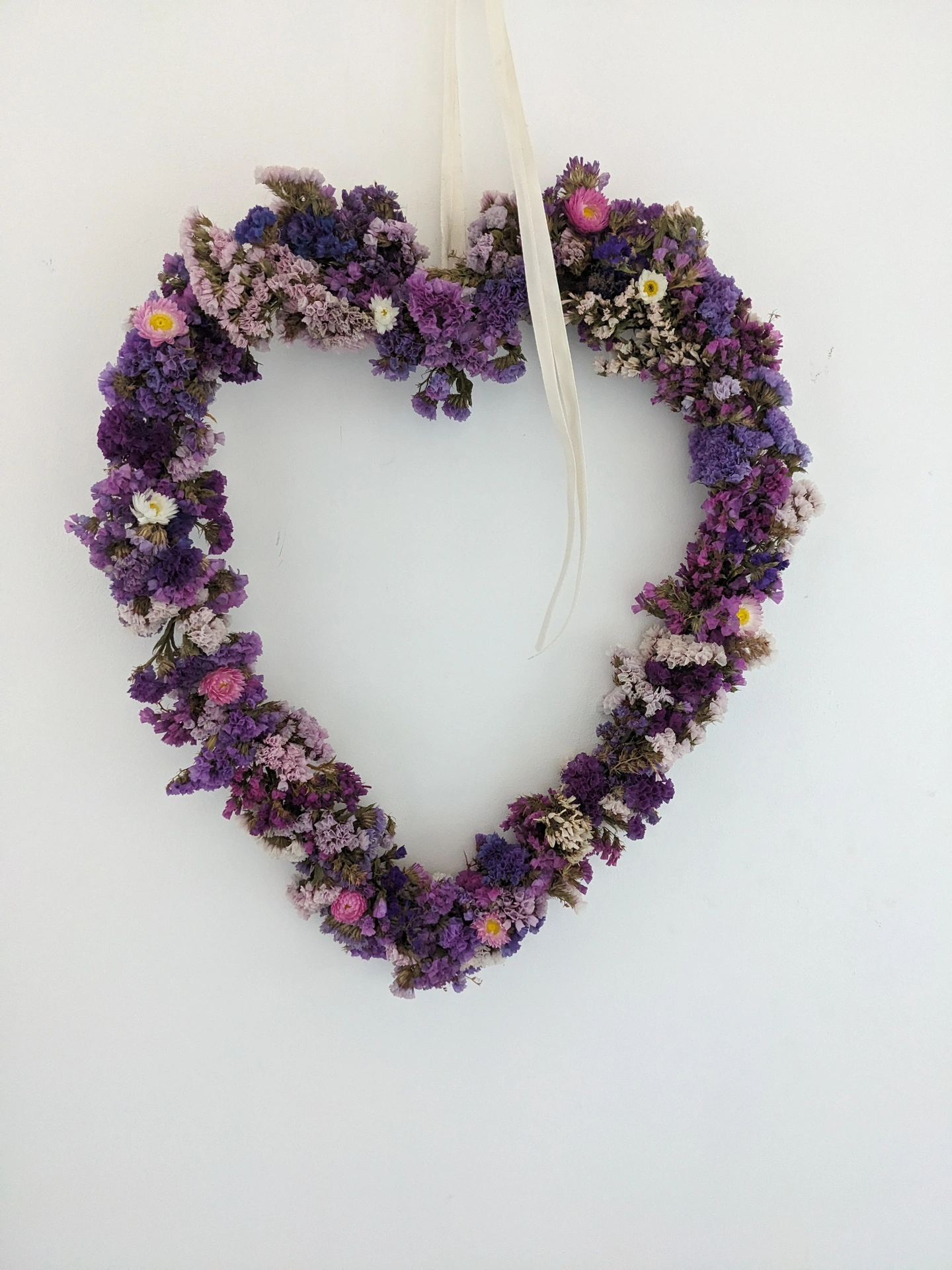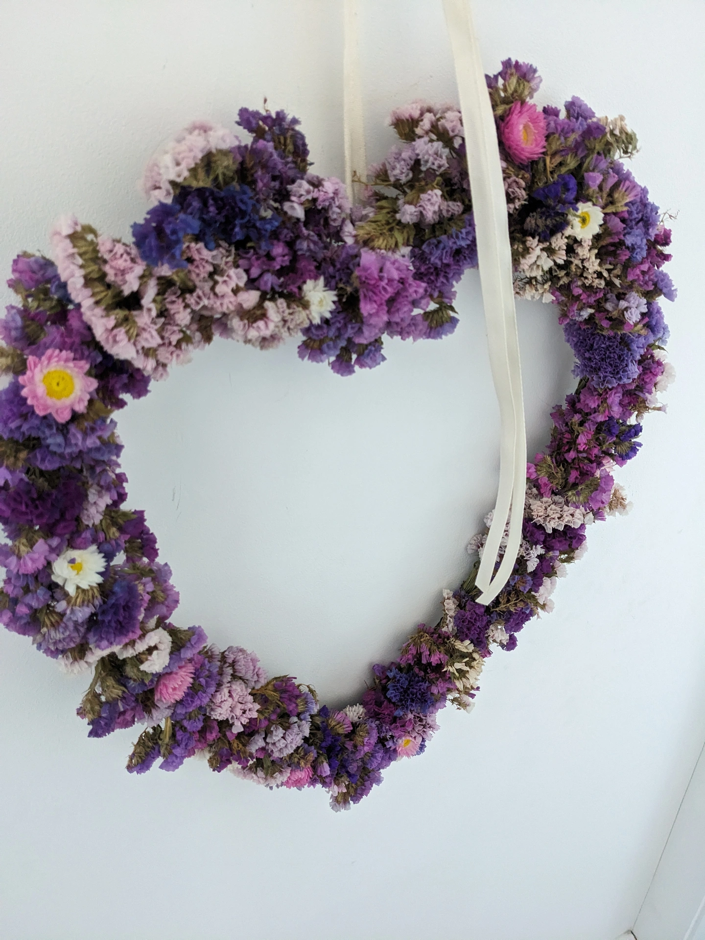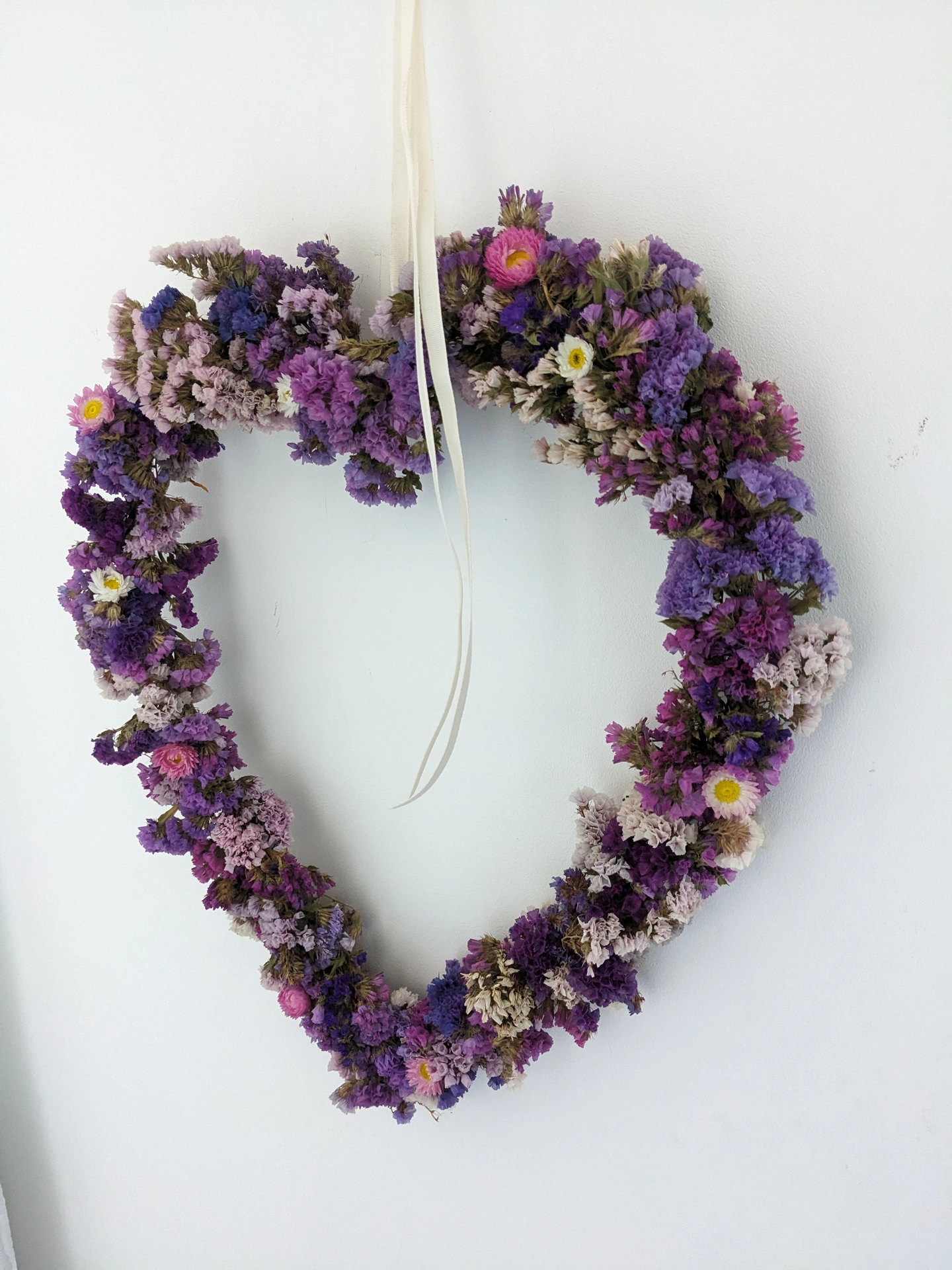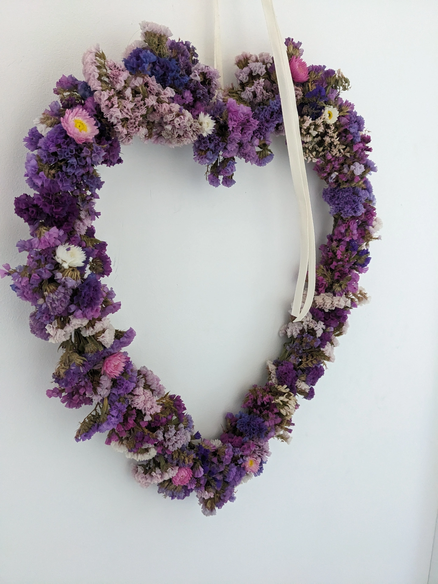 All flowers are organically grown and harvested in West Sussex, celebrating natural beauty and sustainable craftsmanship. Designed to last, this everlasting heart makes a meaningful gift or a charming feature for your home.