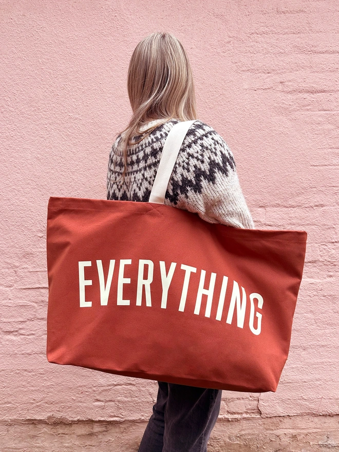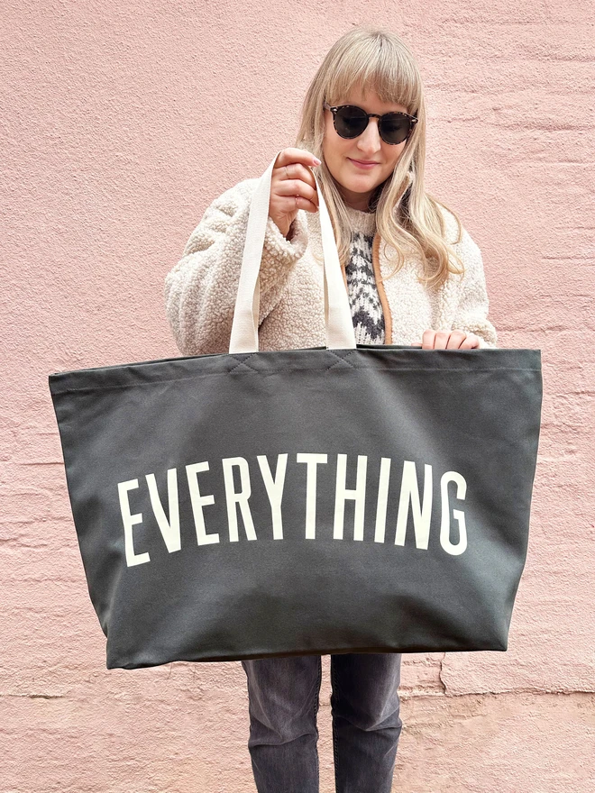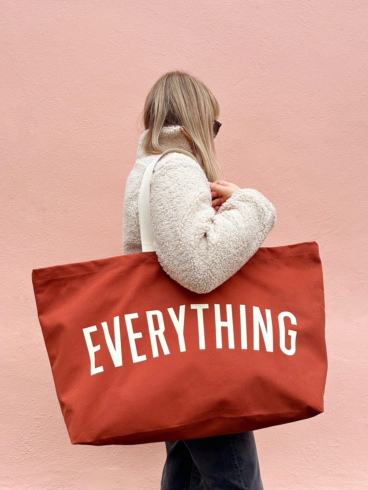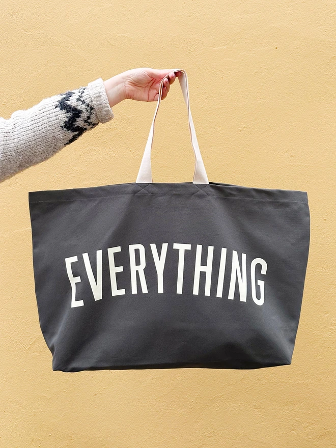 Our oversized EVERYTHING bag has been made from thick 100% cotton canvas, screen printed by hand, big and bold.