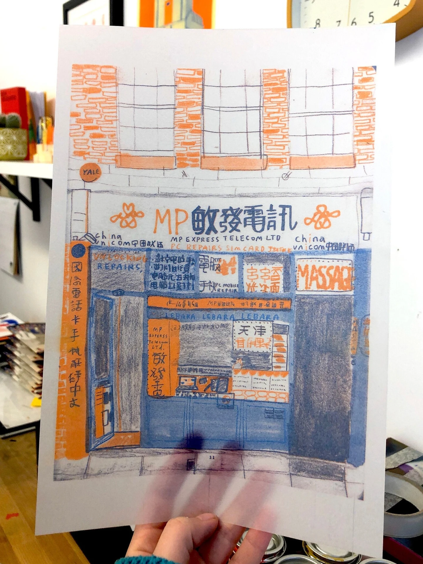 Express Convenience Store Front Risograph Print