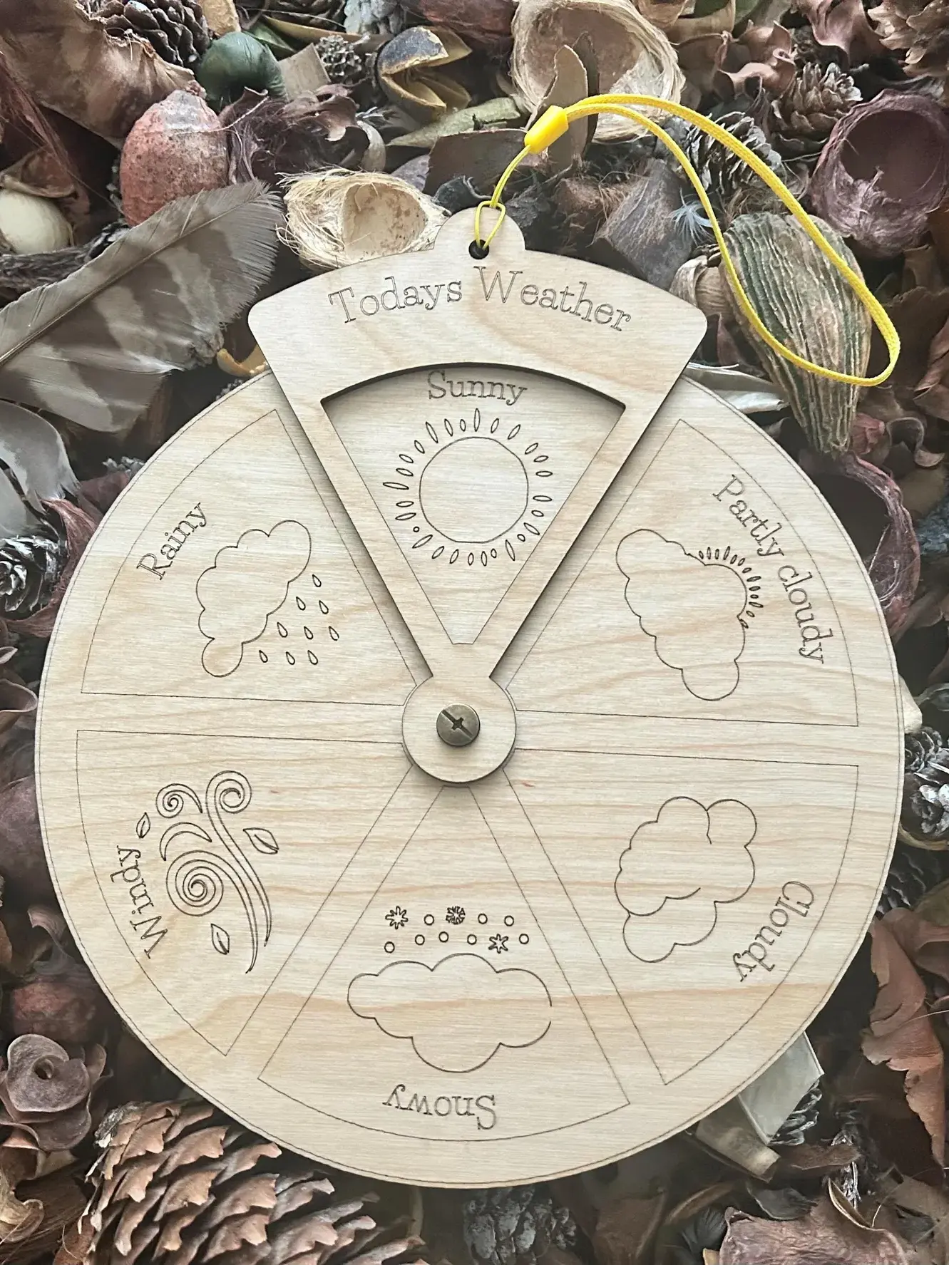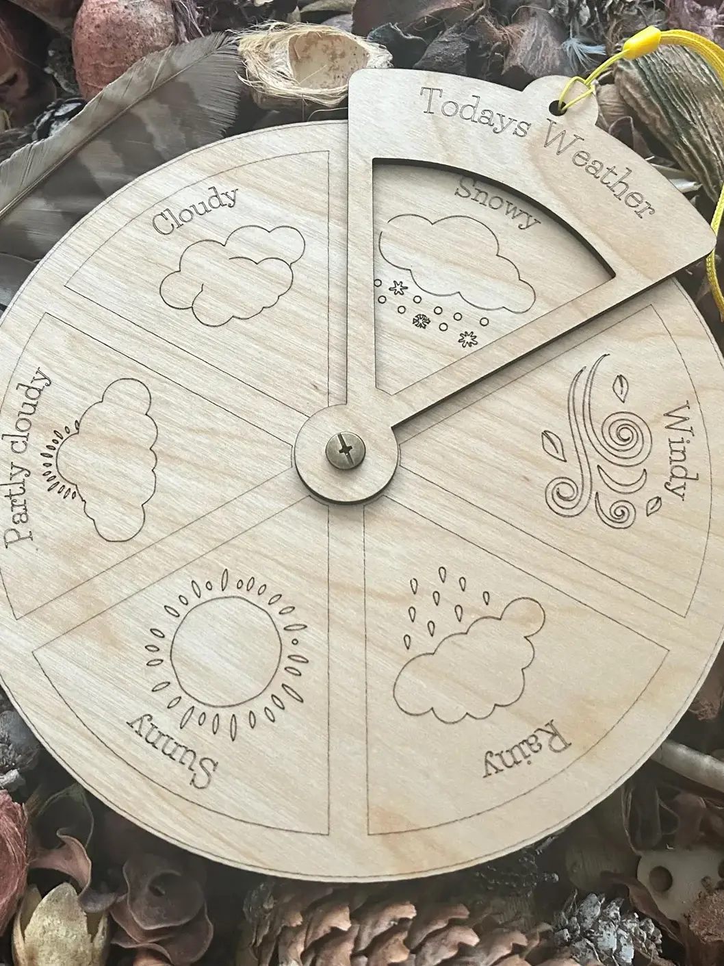 Discover the joy of exploring today's weather with our XL weather wheel, a delightful blend of education and play. This handmade kids gift is crafted from durable birch plywood, finished with natural oil to withstand both indoor and outdoor learning environments. Perfect as a weather visual aid, it invites little learners to connect with rainy, windy, and cloudy days in an engaging way.