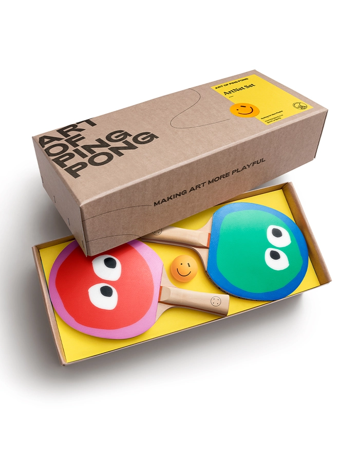 Designed for smiles, not scoreboards.The Face Off ArtBat brings a dose of fun to the game — bold eyes, bright colours and a design that looks just as good mid-match as it does hanging on the wall. Made for family battles, quick games and long laughs.