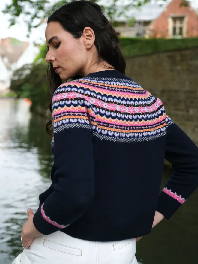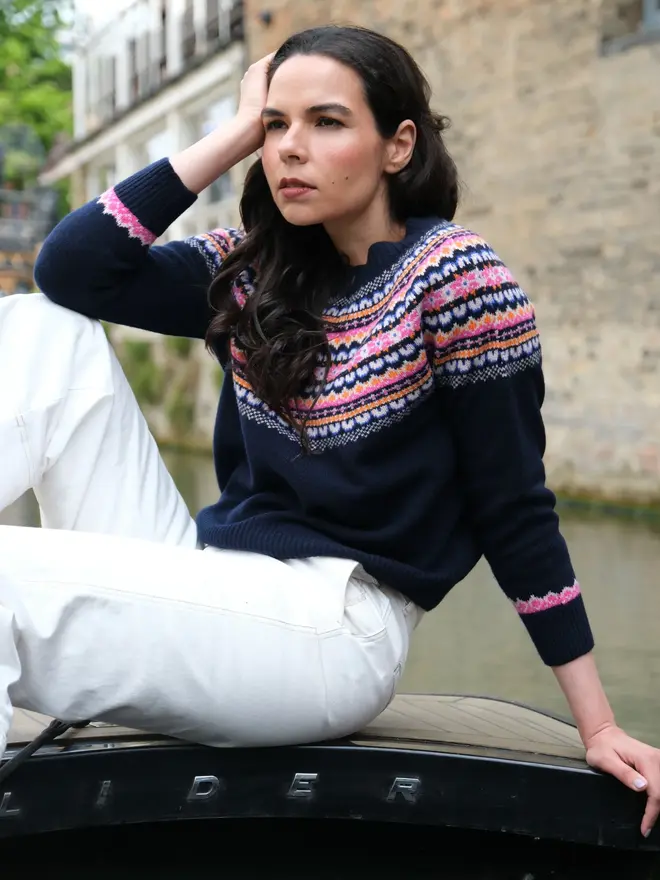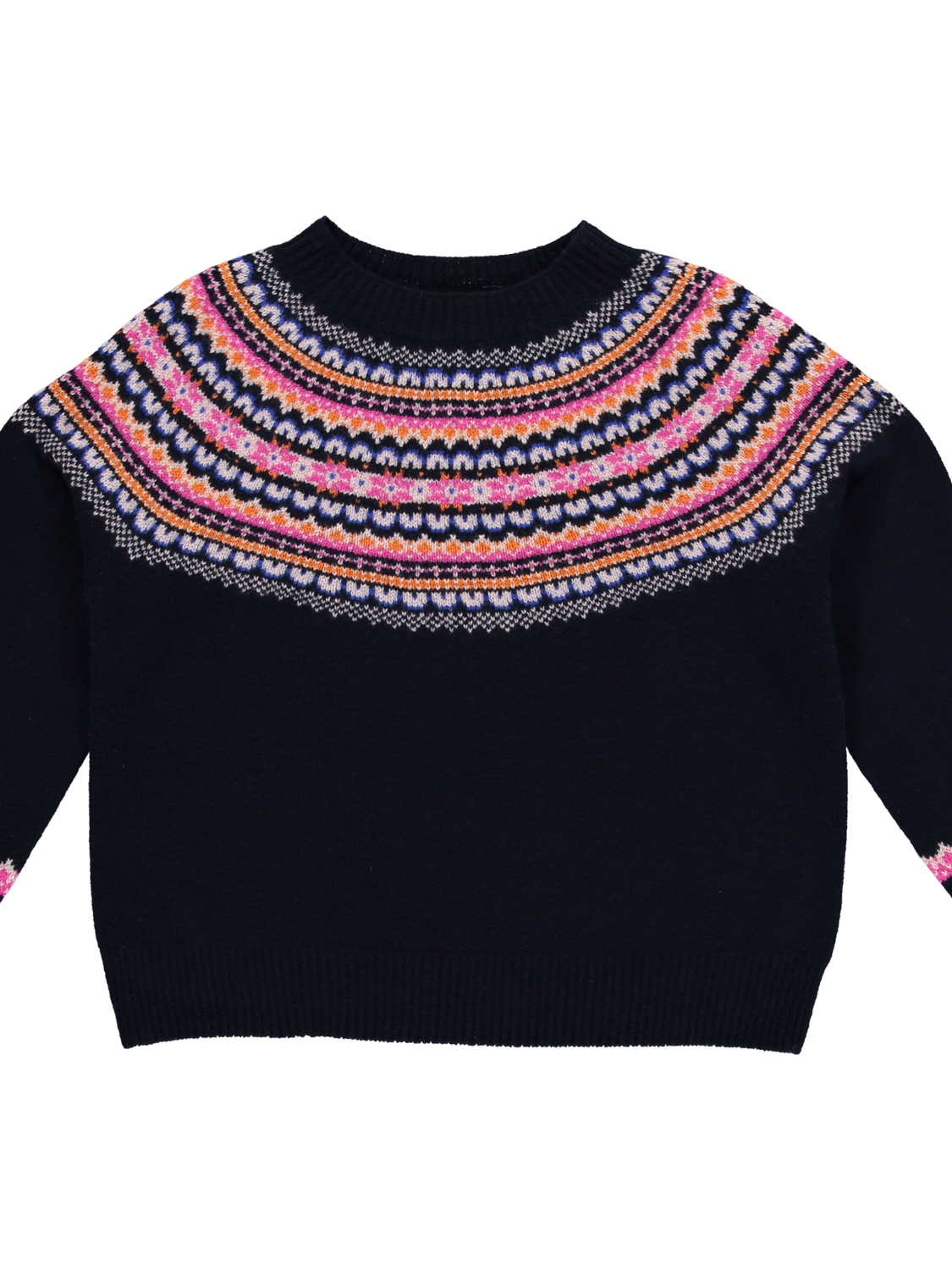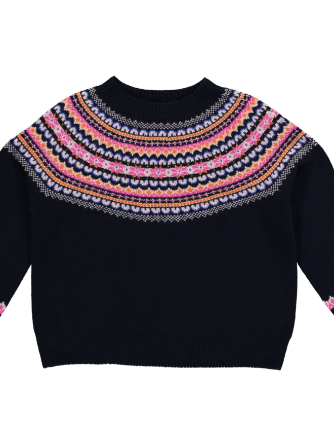Fairisle Snowflake Design Jumper In Nero With Navy And Pink
