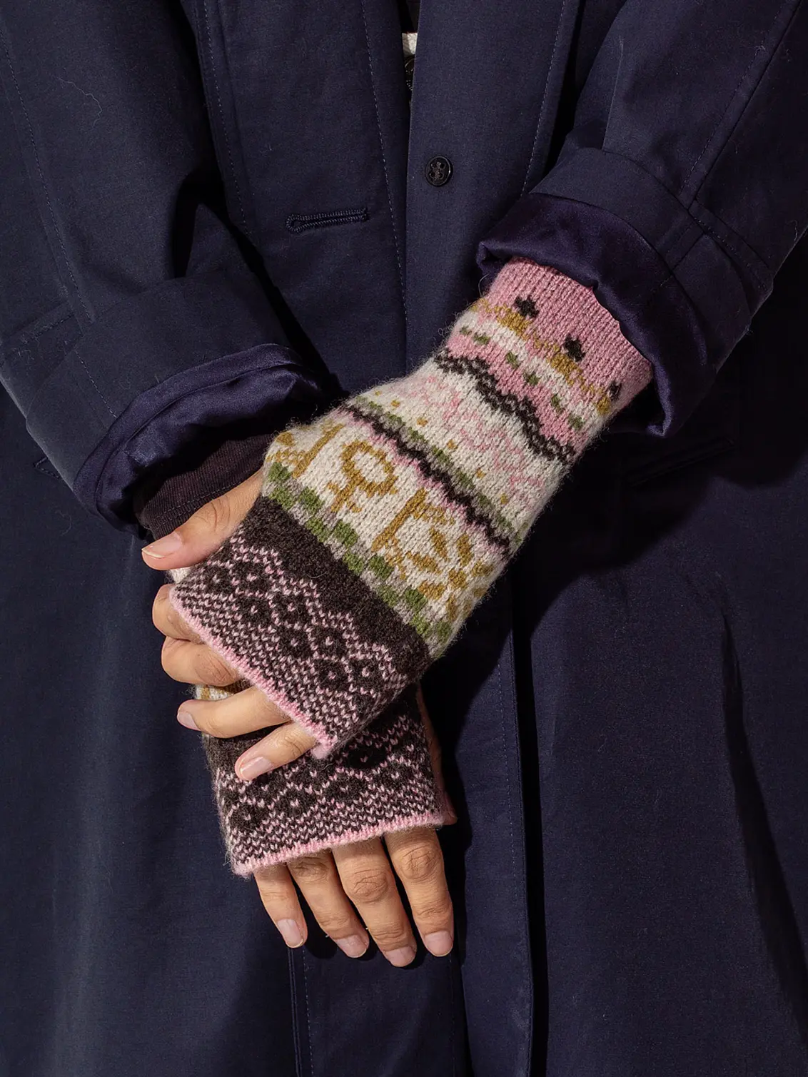 Tubular wristwarmer with thumb slit, double jacquard Fairisle pattern
