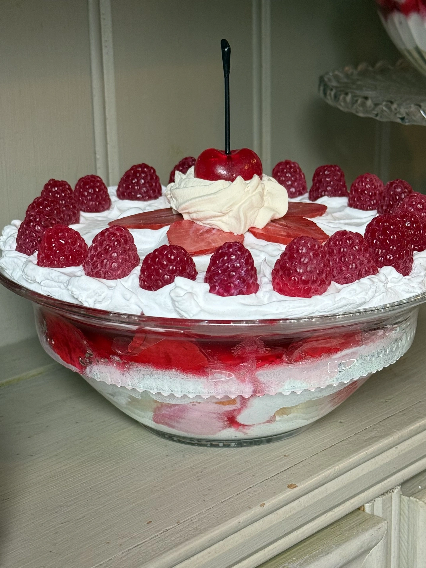 1 x Heritage Trifle Replica with Raspberries & Piped Cream in Glass Bowl