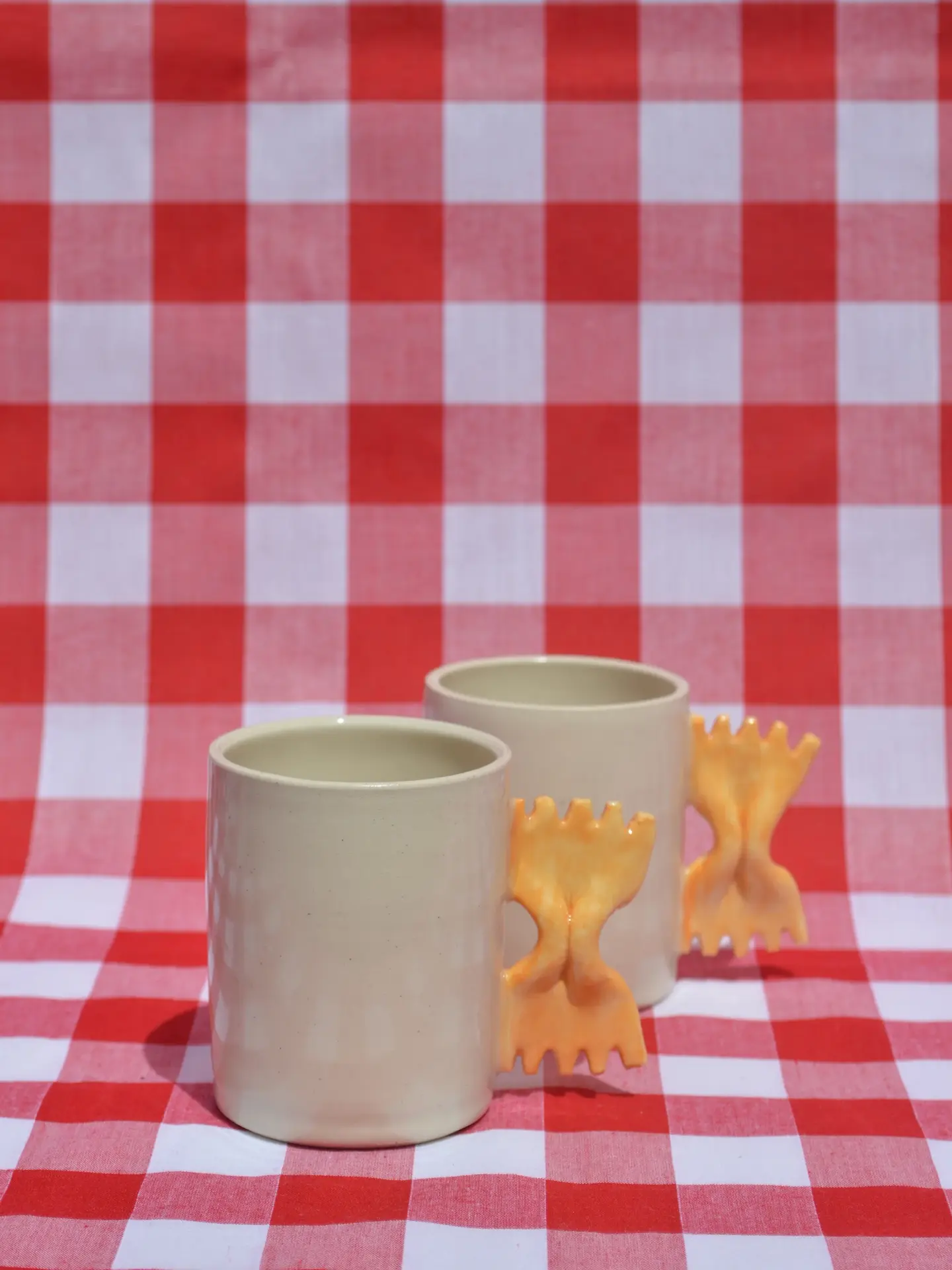 Delight in your espresso with this handmade espresso cup featuring a handle shaped like a farfalle pasta.