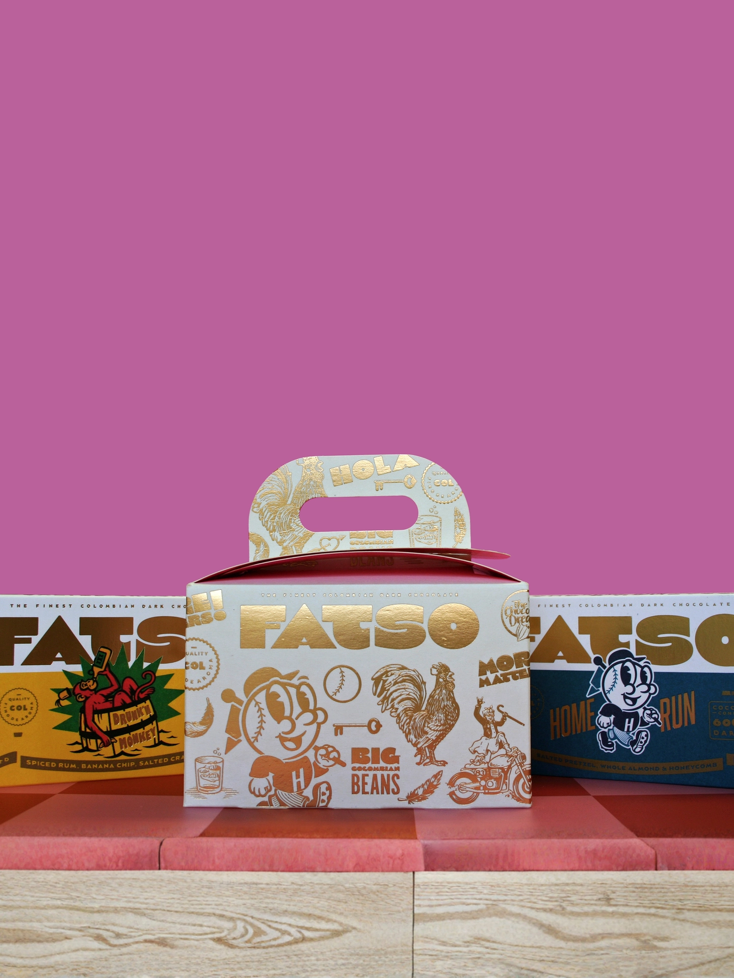 Inside: 3 FATSO Big Bars...chunky, bold, and dangerously moreish.