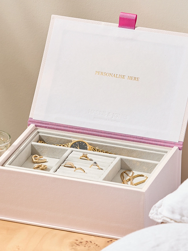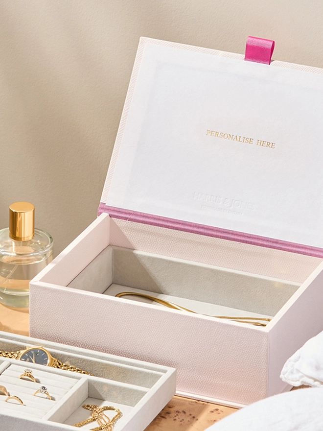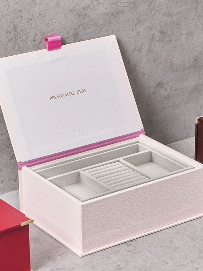Keep your treasured jewellery safe and beautifully organised with our Personalised Faux Leather Jewellery Box. Crafted with care and attention to detail, this elegant jewellery box offers secure layered compartments to protect your accessories from scratches and damage. Add personalisation for a unique touch, making it a perfect gift for yourself or a loved one.