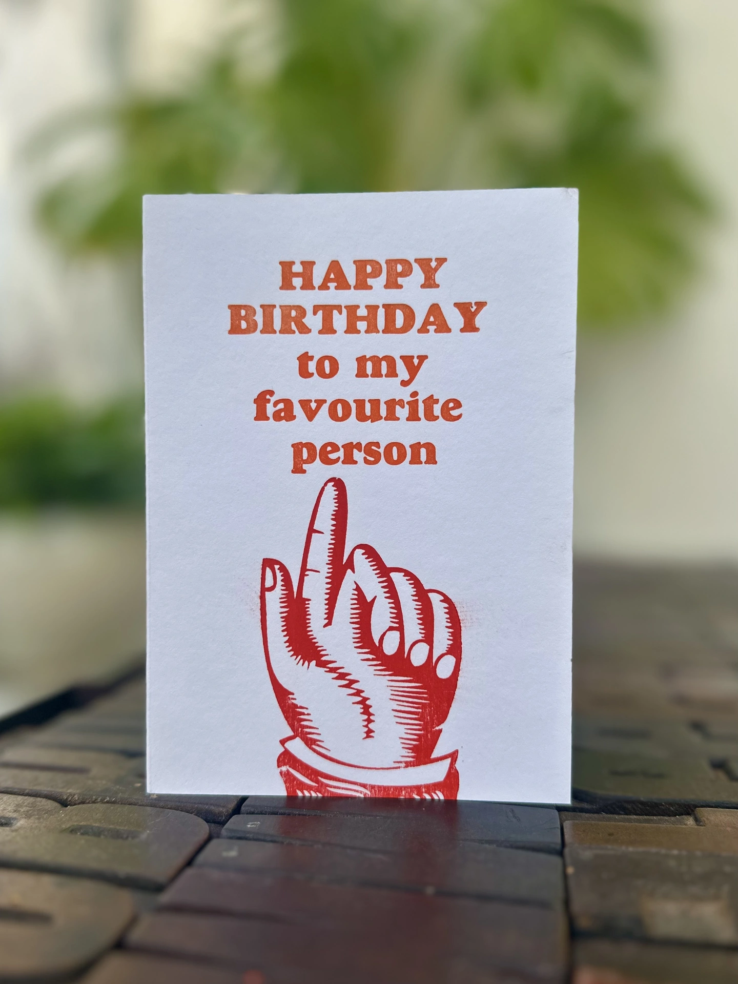 A birthday card for your number one human being! The cards are printed by hand using metal type and block on a vintage press to give that unique letterpress impression on the card.