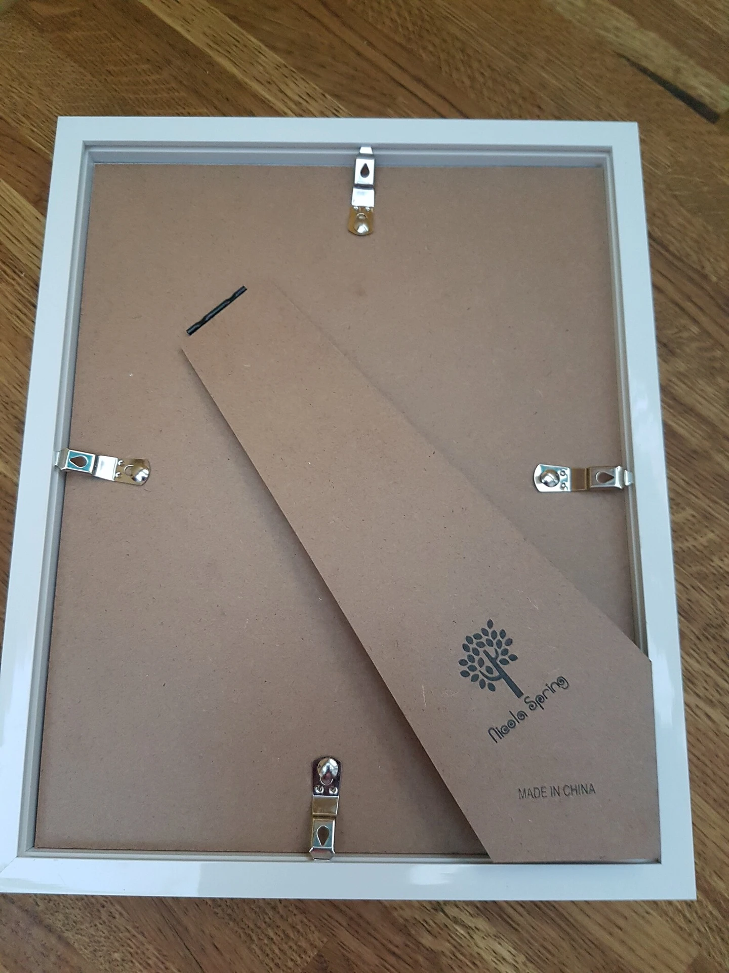 It comes Framed in a High Quality Spring deep box wooden frame frame measuring 8 x 12" with glass White or Black High Quality frame.